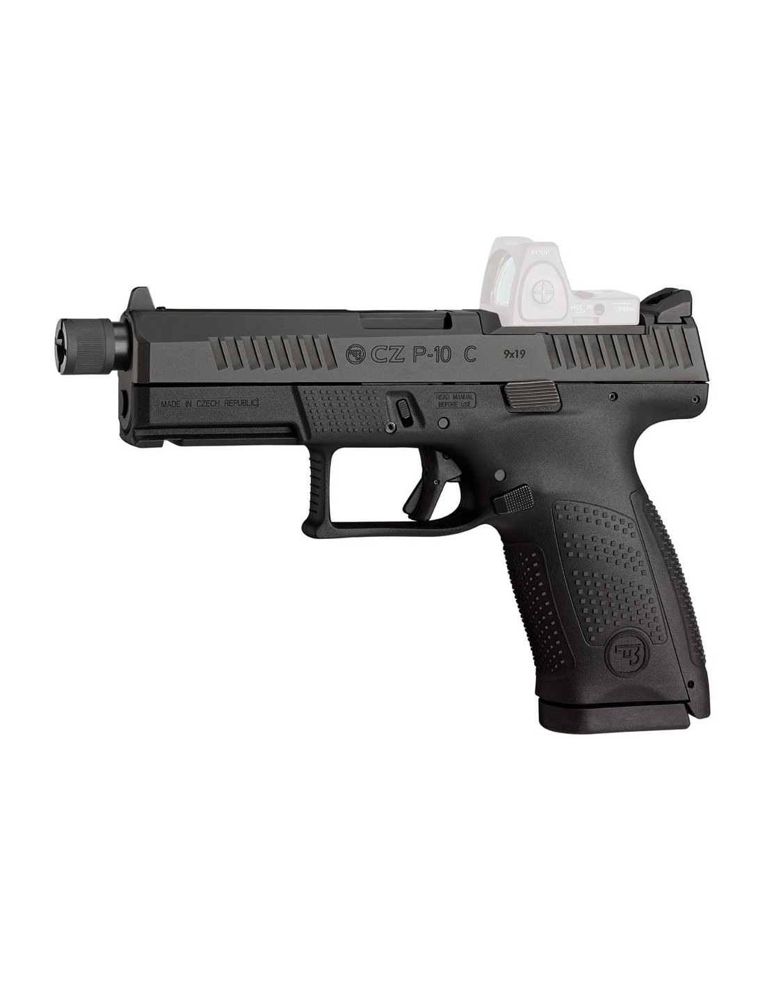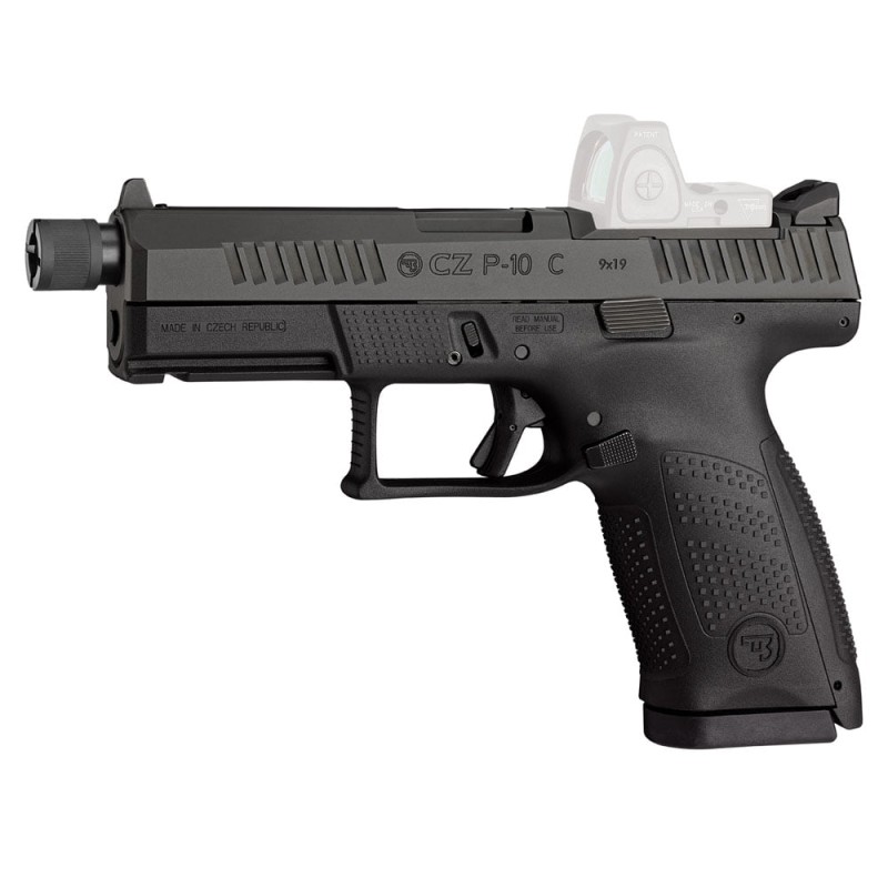 PISTOLA CZ P-10 C OR SR El modelo más popular de la serie CZ P-10 con una corredera modificada para facilitar el montaje de miras modernas de punto rojo por parte de los usuarios, así como un cañón extendido / roscado. Las miras metálicas altas vienen de serie. Disponible en cl.9x19 Largo cañón: 122 mm. Largo total: 209 mm. Peso: 740 grs.