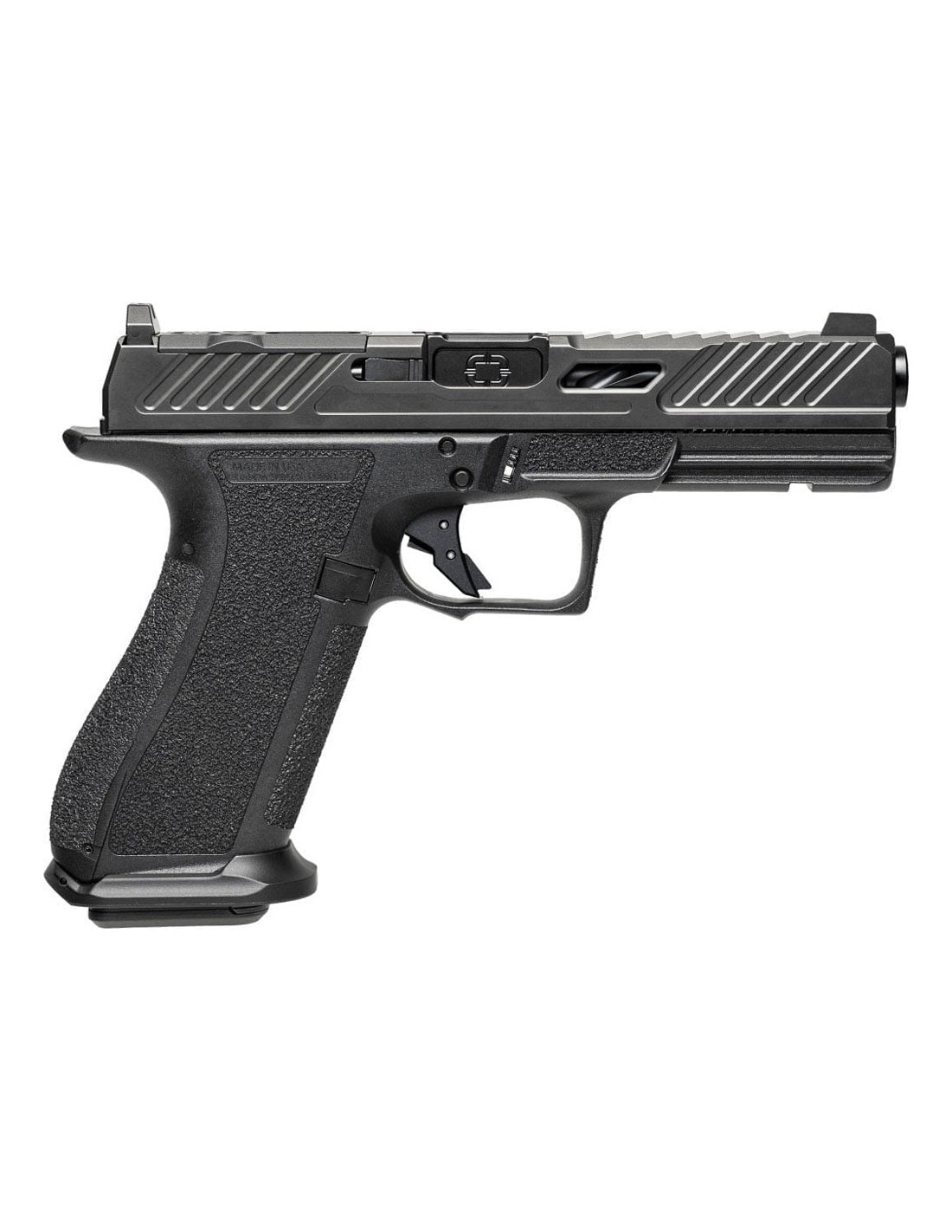 El modelo Shadow Systems DR920 Elite cuenta con dientes direccionales en la parte delantera, trasera y superior. La corredera en los modelos Elite también incluyen un corte de ventana que optimiza el peso. Todos los modelos Elite cuentan con el corte de montaje óptico multihuella pendiente de patente.