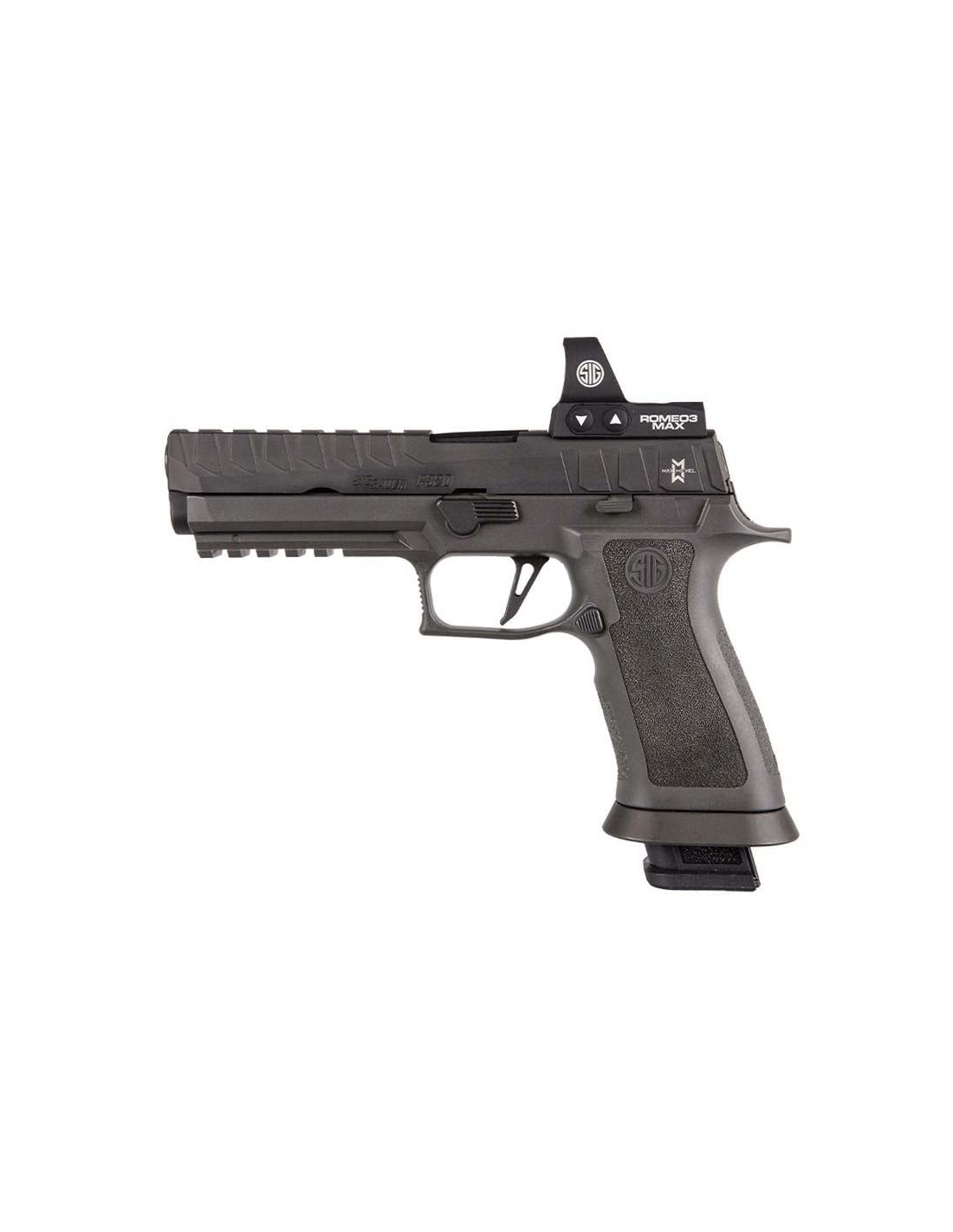 La pistola está construida alrededor del módulo de agarre pesado XFULL con infusión de tungsteno TXG con un gatillo Skeleton plano. La corredera SIG Custom Works P320MAX se rediseñó por completo con estrías envolventes personalizadas para una manipulación lateral y superior ideal y está equipada con un barril de toro de 5 "de grado coincidente, una varilla guía de acero inoxidable de una pieza y un cilindro de 14 lb. y 12 libras. Resorte de retroceso estilo 1911, lo que permite una experiencia de disparo fácilmente personalizada. La pistola viene de serie con SIG SAUER Electro-Optics 6MOA ROMEO3MAX y (4) 21rd Steel Magazines... suficiente para cualquier configuración de competencia.