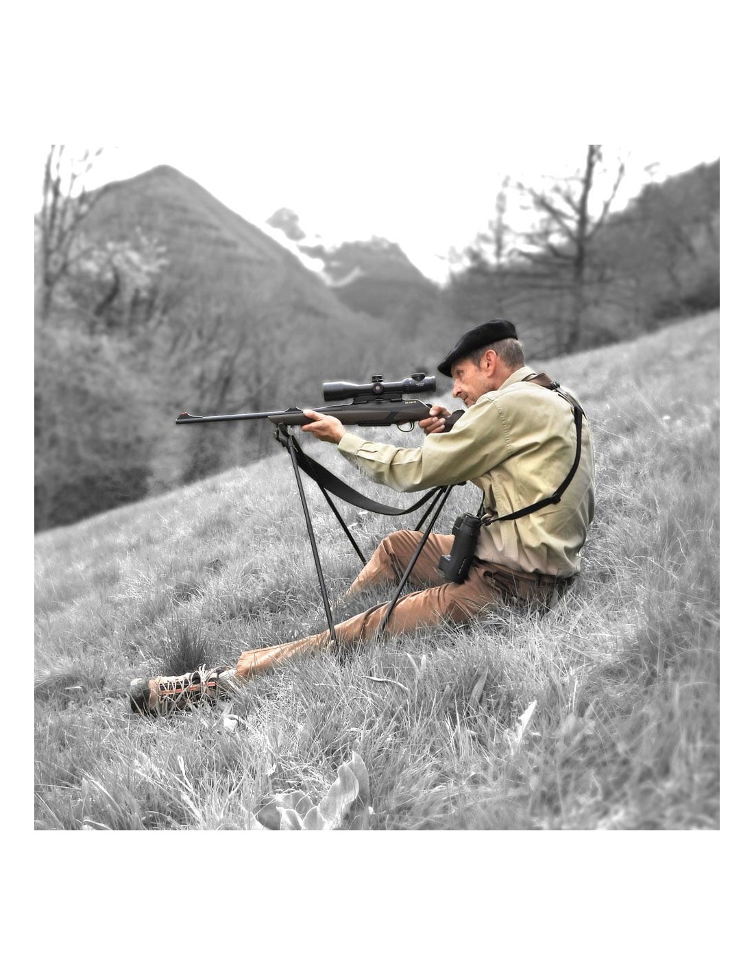 El Sit Stick es un bastón para usar sentado, recostado o de rodillas de construcción ligera y resistente, con una estabilidad excepcional para los tiros a larga distancia.