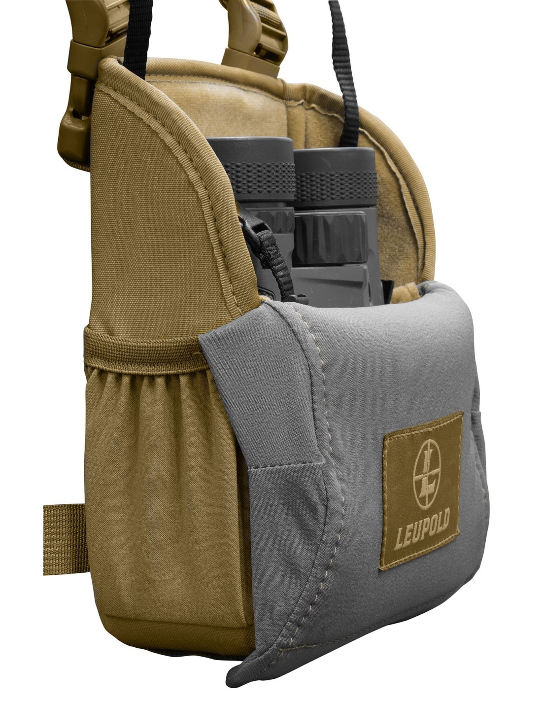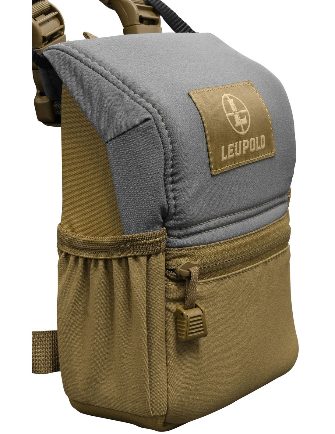 Mantenga los prismáticos completamente seguros dentro del nuevo arnés Leupold Magnético. Está fabricado en Estados Unidos y es lo suficientemente resistente para soportar las condiciones más duras en el campo. El forro de vellón suave hace que sacar y meter los binoculares sea se a de forma silenciosa y suave, mientras que un cierre magnético sin hebilla proporciona un fácil acceso tan solo con una mano. Disfrute de una comodidad mejorada durante todo el día en el campo con las nuevas correas de malla. Con un bolsillo elástico frontal con cremallera, dos bolsillos laterales elásticos y un bolsillo trasero, hay un amplio espacio de almacenamiento para diferentes accesorios. Se adapta a todos los prismáticos Leupold actuales excepto al Santiam de 15 aumentos.