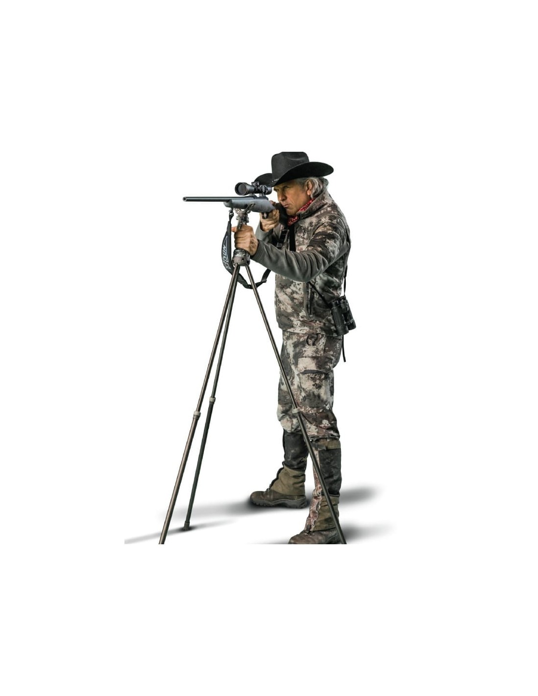El bastón Primos Trigger Stick Gen 3 se ajusta a la altura deseada manejándolo con una sola mano y con solo apretar un gatillo. Su sistema de fijación rápida con bloqueo integrado, hace que sea más fácil que nunca cambiar la altura del apoyo de forma rápida y precisa. Posee un sistema de rotación suave que ayuda a girar y buscar el objetivo. Puede usarse de pie, sentado o arrodillado.
