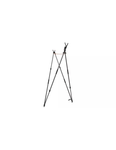 Con un peso de solo 985 gramos, es fácil de transportar durante largas jornadas, mientras que su altura ajustable entre 1,24 y 1,98 metros permite adaptarlo perfectamente a la morfología del tirador y al terreno. Se ajusta de forma sencilla mediante cuatro cierres giratorios, ofreciendo una regulación rápida y segura.
