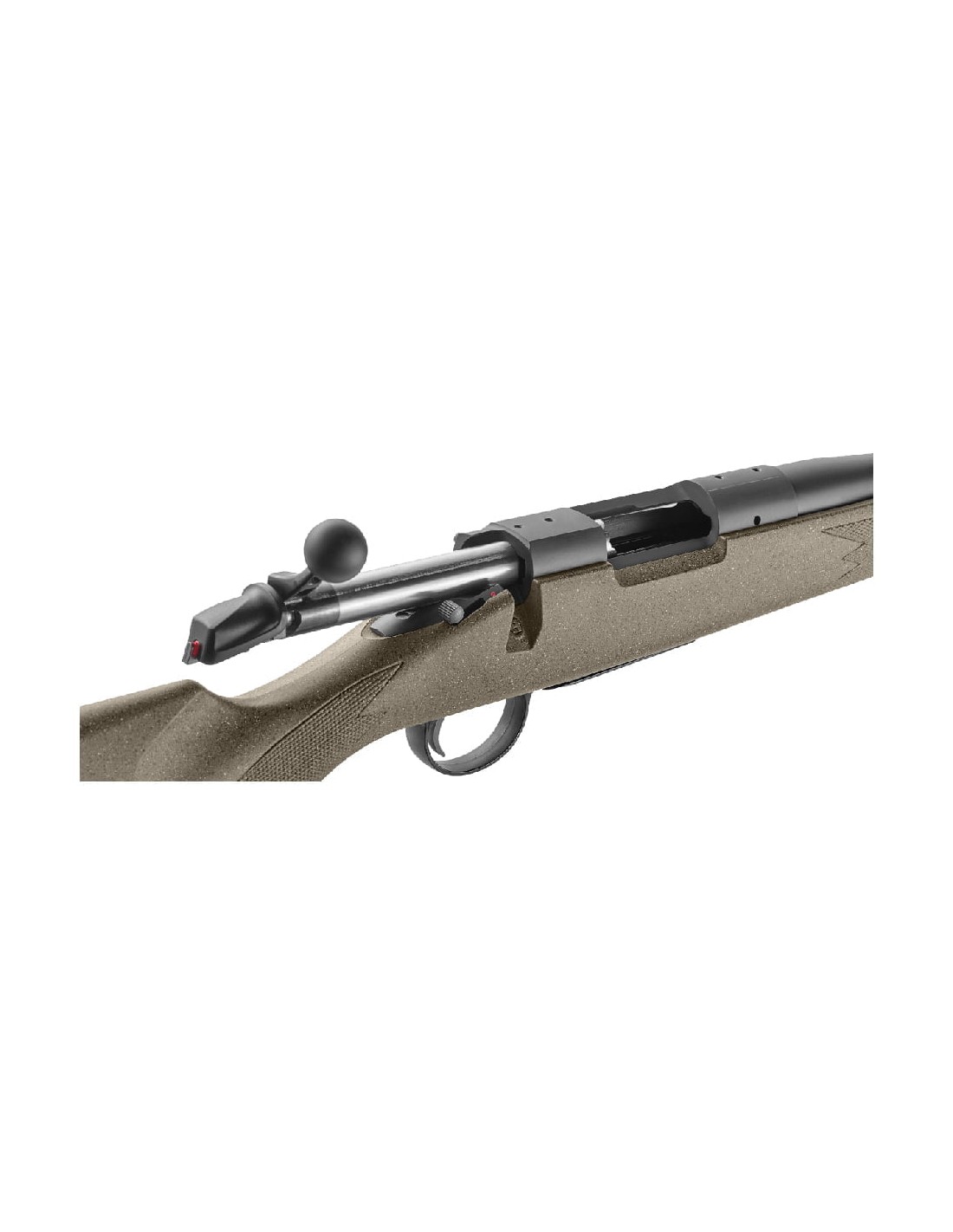 La culata sintética moldeada está hecha de polímero reforzado con fibra de vidrio. Durante el proceso de moldeo, se insertan pilares de acero que se fijan de forma permanente, proporcionando una superficie de descanso segura y estable para la acción y el cañón. El recubrimiento SoftTouch le da a la culata un tacto suave y ligeramente pegajoso, fácil de agarrar incluso en condiciones climáticas adversas.