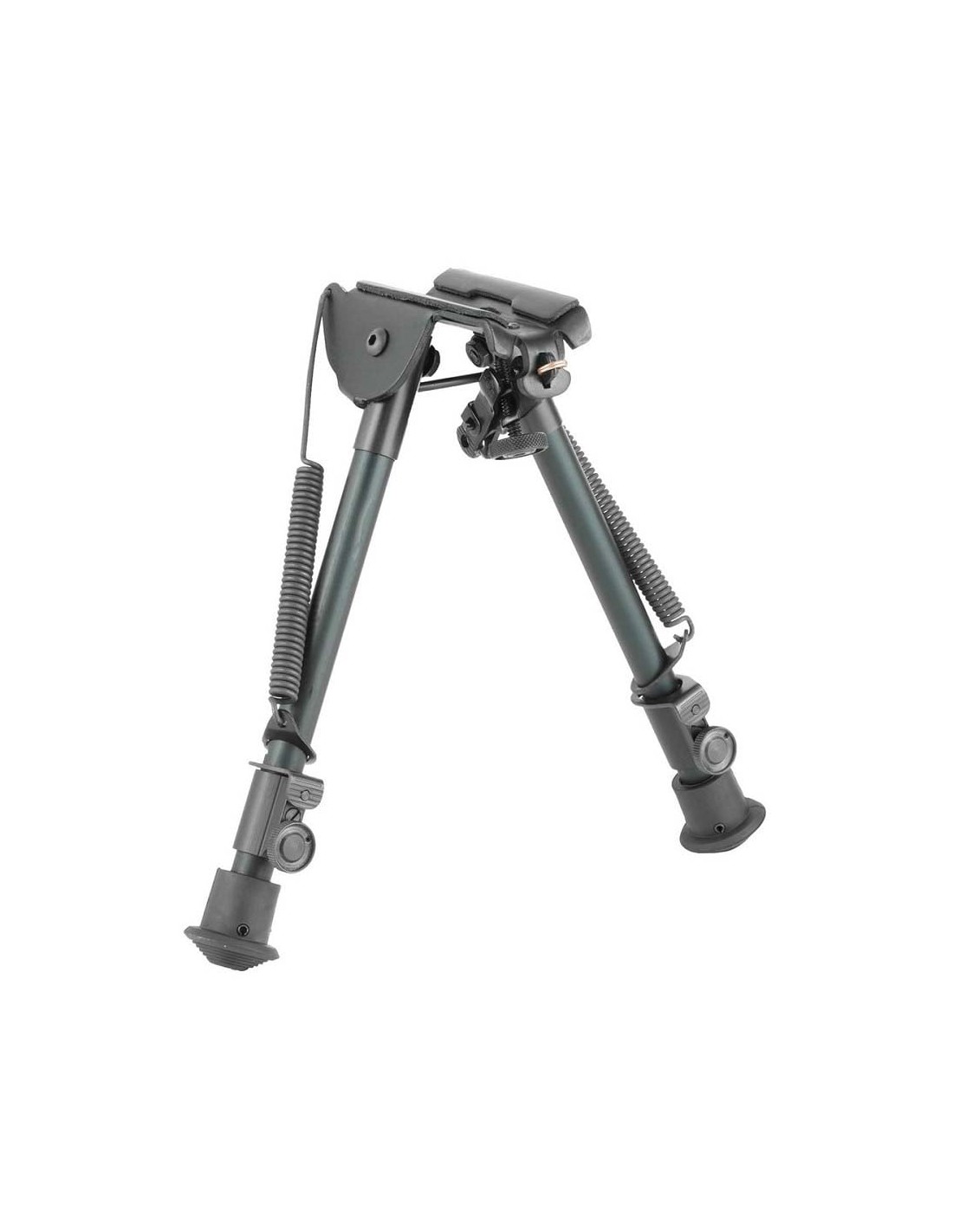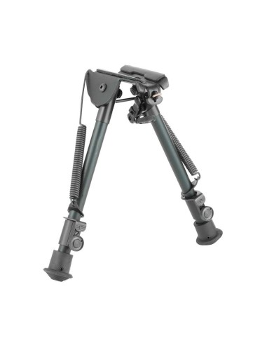 Sus patas son de dos segmentos (patas cortas), uno de ellos ranurado, plegables y extensibles de 9" a 13" (de 22,9cm a 33cm) de longitud. Al tener la pata ranurada, este modelo no dispone de rueda de bloqueo para mantener la longitud deseada. Fácil de instalar en la anilla portafusil.