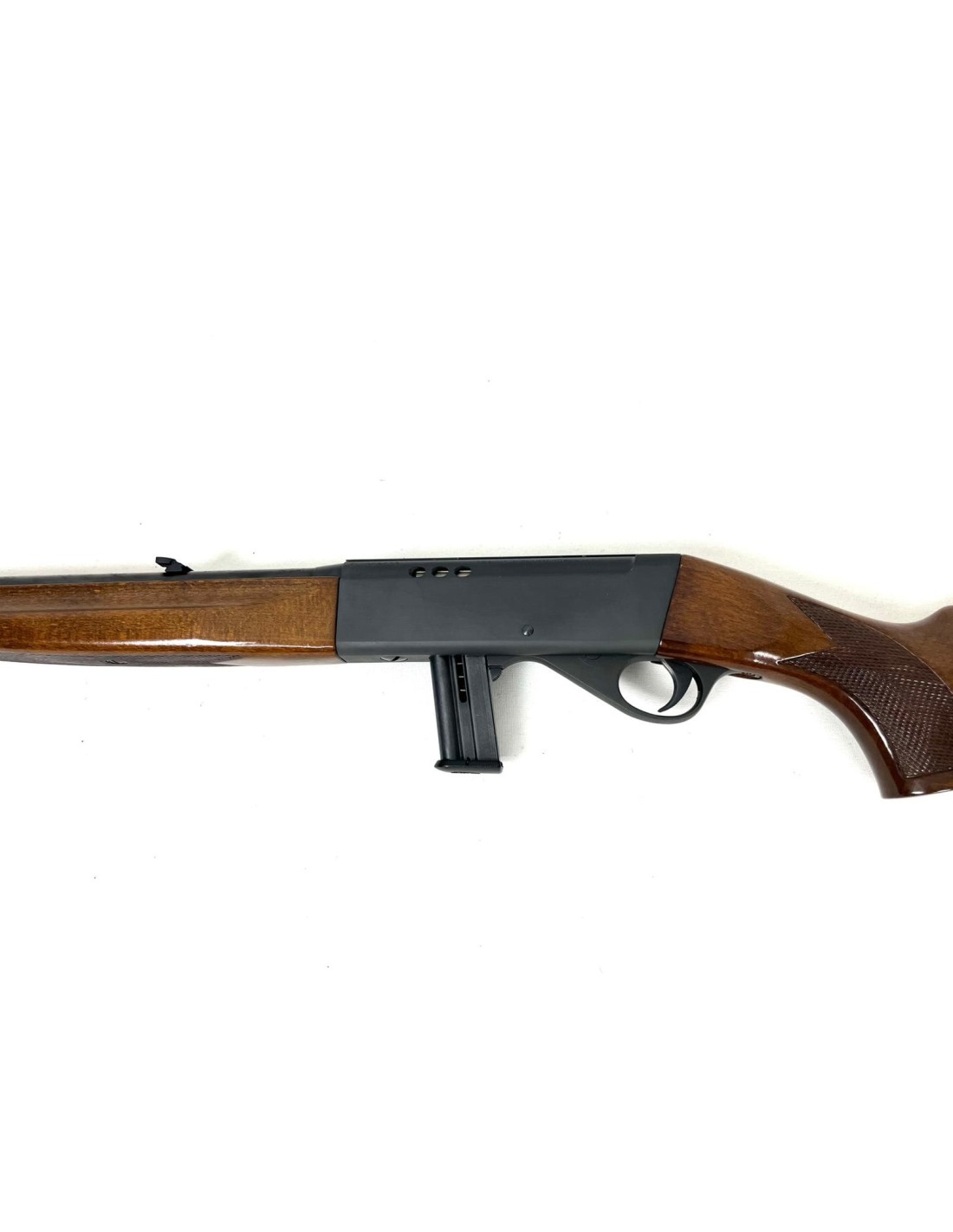 Carabina Anschutz CS calibre .22 LR, semiautomática con acabado en madera.