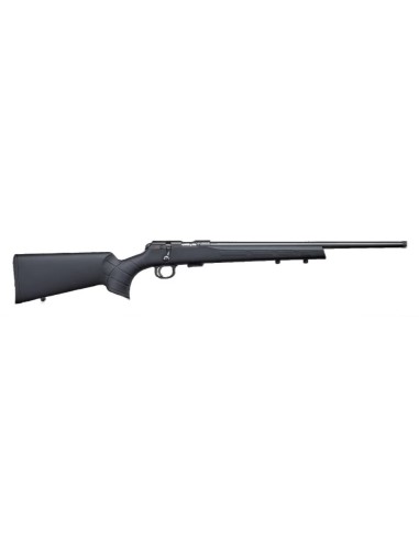 CARABINA DE CERROJO CZ 457 SYNTHETIC El modelo CZ 457 Synthetic está diseñado para las condiciones climáticas más adversas y combina un acabado de superficie extremadamente resistente realizado mediante la nitruración con una culata robusta de polímero negro. Así como en todas las demás armas de la serie 457, también el modelo Synthetic aprovecha el sistema de cañones fácilmente desmontables que permite una conversión a otra longitud, perfil y calibre en breve tiempo. La perfecta forma ergonómica de la culata del modelo 457 Synthetic deriva del popular rifle 557 y está adecuada tanto para los diestros, como a los zurdos. La cantonera de goma suave aumenta el confort y el acabado de superficie soft-touch garantiza un agarre seguro. Otra ventaja de esta culata es una importante reducción del peso, ¡llegando a pesar el arma tan solo 2,4 kg! Disponible en cl.17HMR, 22LR Y 22WMR Largo cañón: 52´5cm. Largo total: 97´7cm. Peso aprox: 2,4 kgs.