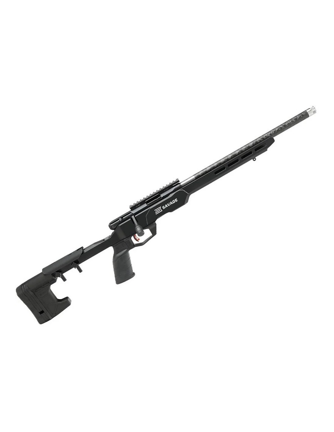 La Savage B22 Precisión Lite en calibre 22 LR monta un cañón de acero inoxidable estriado con envoltura de fibra de carbono, de una longitud de 457 mm (18”). El cañón viene roscado en su extremo con cubre rosca, y el paso de hilo es de ½-28.