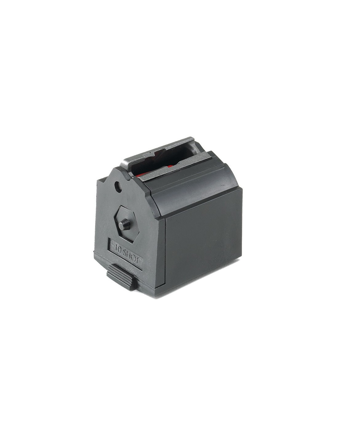 - Cargador rotativo desmontable de 10 balas que cuenta con un único rotor para separar las balas y proporcionar una alimentación fiable.