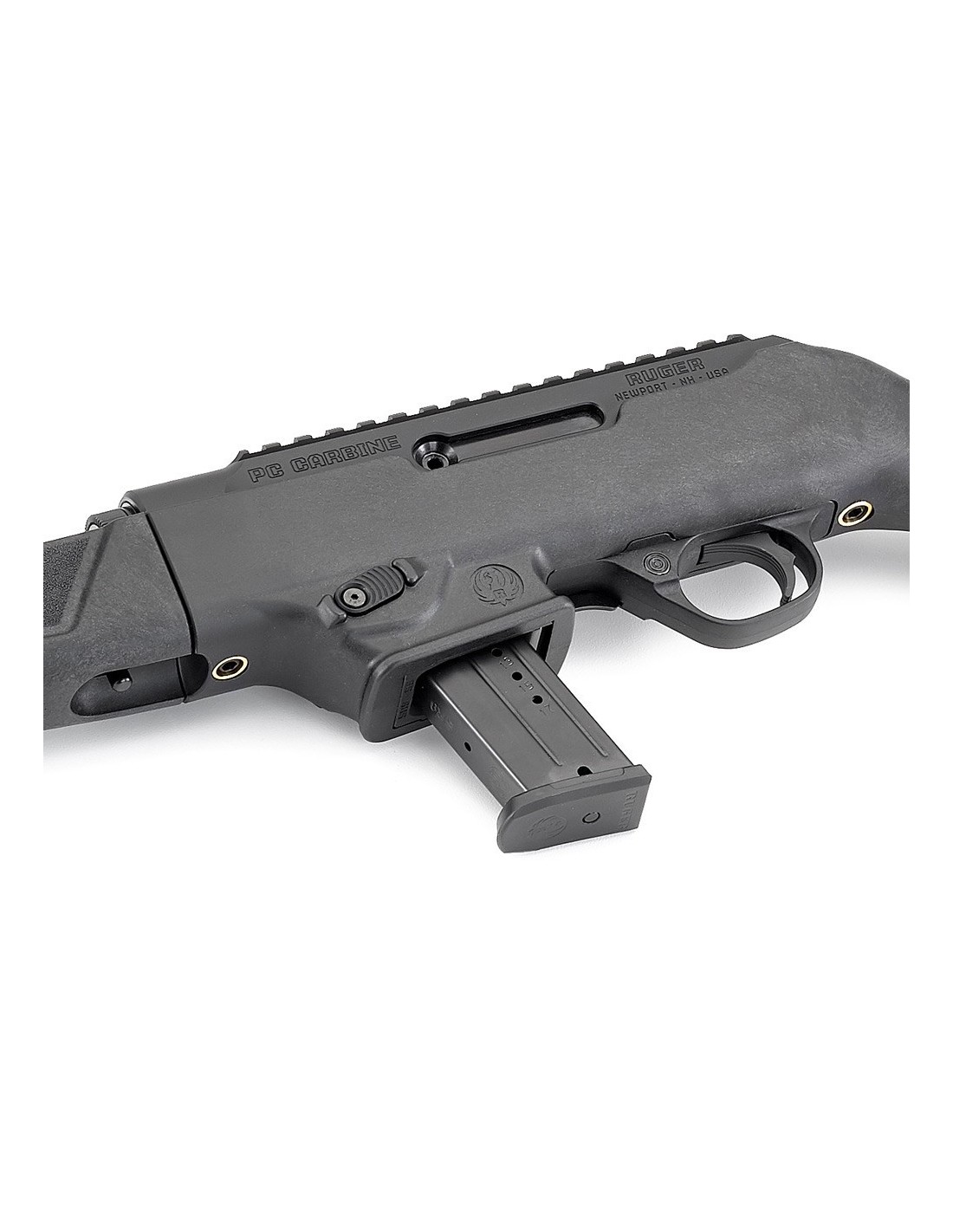 Diseñada exclusivamente para su uso con una variedad de cargadores, la PC Carbine cuenta con un sistema de pozo de cargador fácilmente intercambiable que permite que la carabina acepte los cargadores más comunes de Ruger y Glock. Esta nueva carabina también cuenta con una acción de golpe muerto con un peso de golpe muerto de tungsteno personalizado que acorta el recorrido del cerrojo y reduce el retroceso percibido y la elevación del cañón.