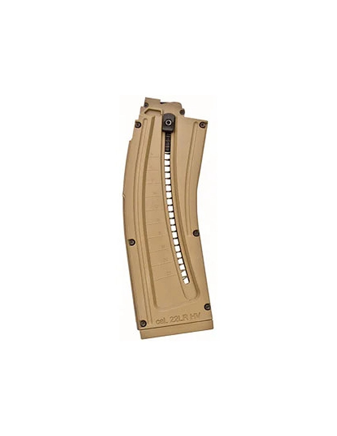 Cargador original de 22 balas para el rifle ISSC MK22 .22LR en color arena. Fabricado con un polímero resistente, cuenta con un soporte para el pulgar de longitud completa y es totalmente desmontable para su limpieza.