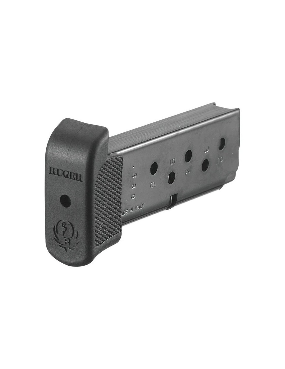 Cargador del calibre 380 Auto / 9 corto de acero pavonado con capacidad para 7 balas. Cuenta con una extensión de empuñadura integrada de 0,4"" adicionales en el extremo. Esta extensión permite obtener un agarre adicional en la empuñadura de la Ruger LCP para un mejor control al disparar. Valido par pistolas Ruger LCP. Accesorio de fábrica original Ruger.