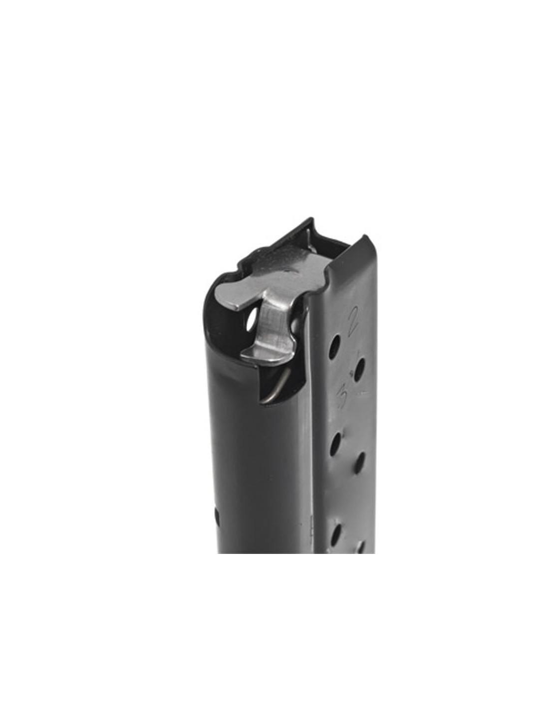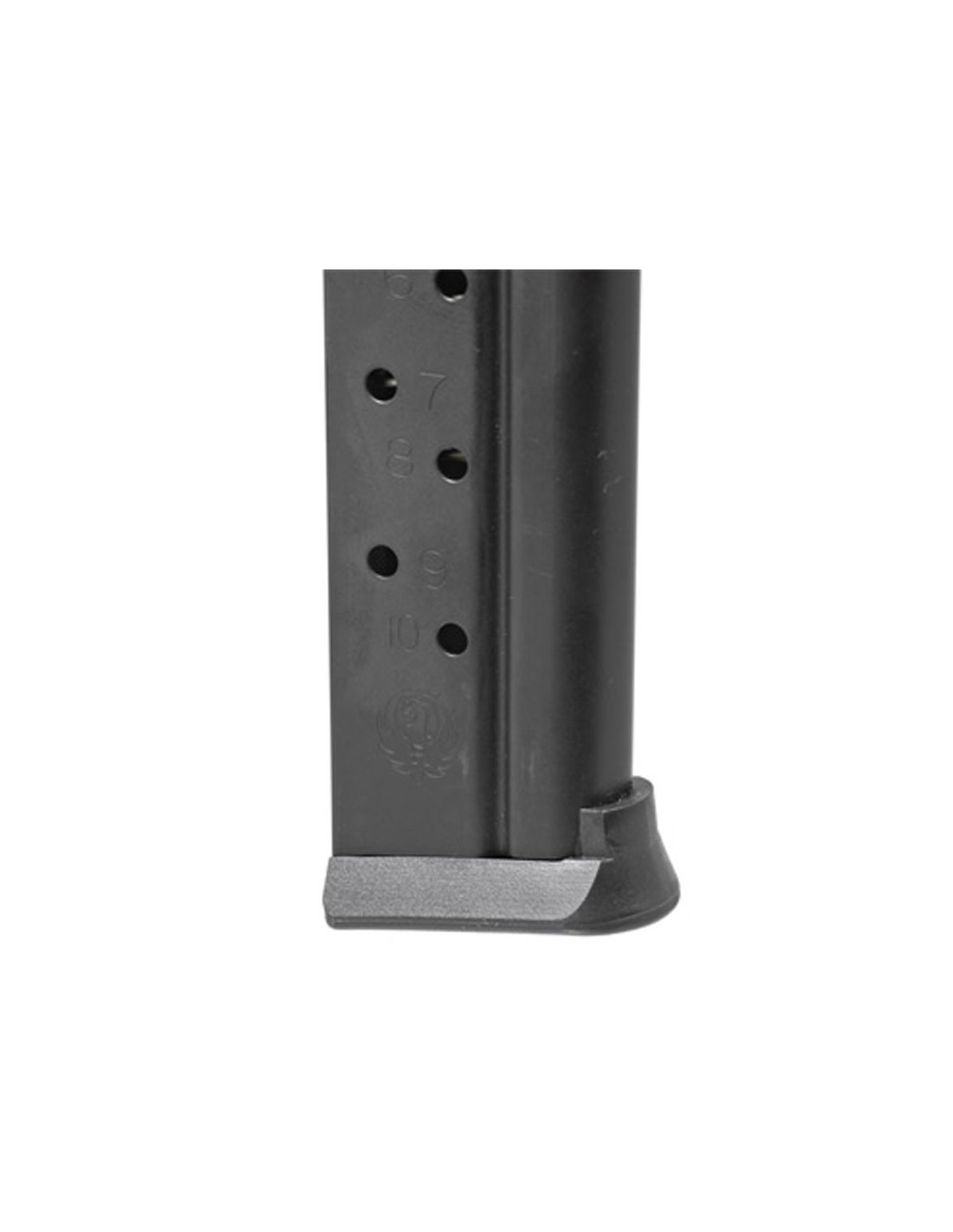 Cargador del calibre 9mm. Parabellun de acero inoxidable en acabado pavonado con capacidad para 10 balas. Valido únicamente para pistolas Ruger SR1911 Competition. Accesorio de fábrica original Ruger.