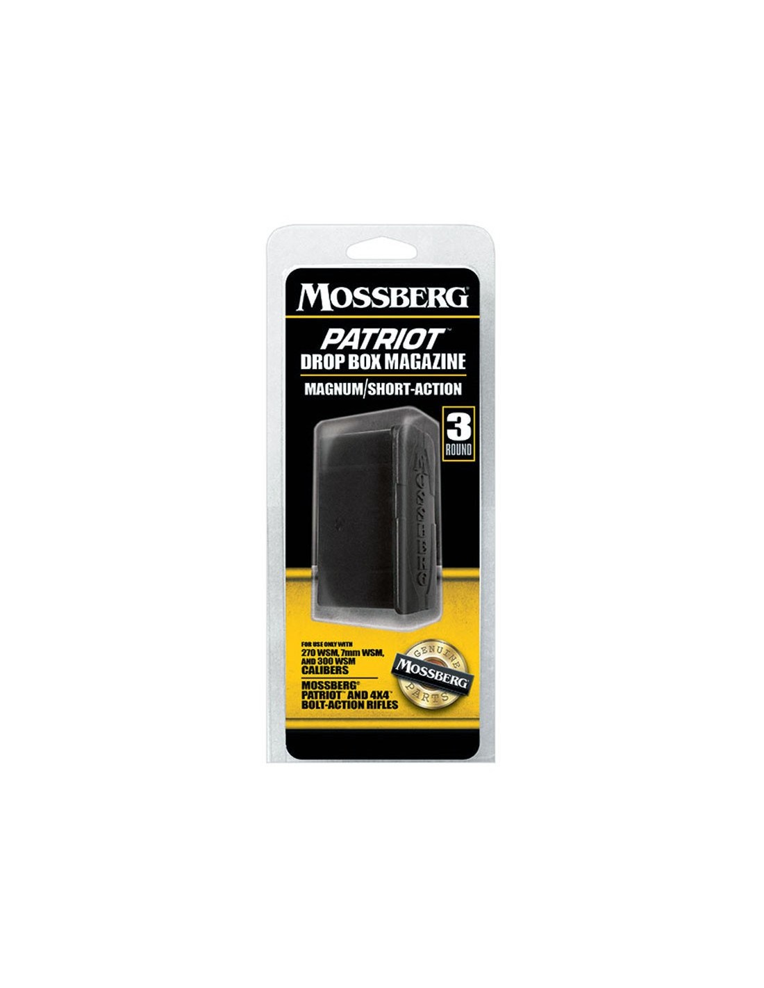 Cargador de polímero con capacidad para 3 balas. Fabricado con las mismas especificaciones, materiales y estándares exigentes que el cargador suministrado originalmente con su rifle de cerrojo Mossberg.