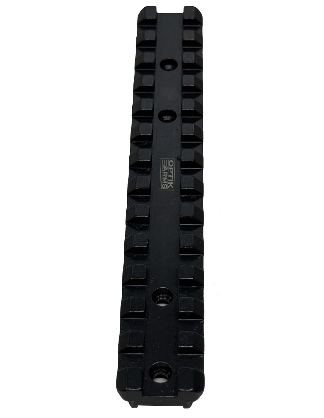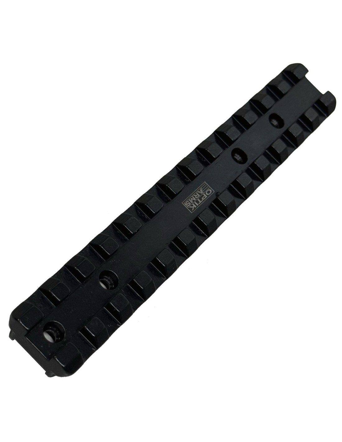 Los carriles picatinny de OPTIK ARMS están fabricados a partir de una pieza de acero hexagonal de alta calidad y mecanizados en centros de CNC de alta precisión. Estos carriles fabricados a gran precisión para conseguir la mejor calidad poseen un acabado pavonado y todos sus bordes están redondeados.