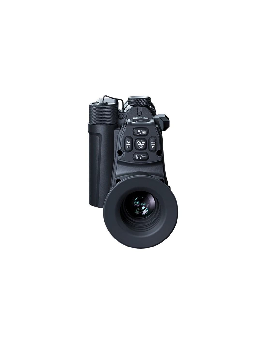 Su pantalla OLED de alta resolución (1600×1200 px) garantiza una visualización clara y realista, con posibilidad de ver en color o blanco y negro según la luminosidad del entorno. La lente de 20 mm y el zoom óptico 2x, combinados con el zoom digital (1x/2x/3x), permiten un encuadre preciso y una gran calidad de enfoque a distintas distancias.