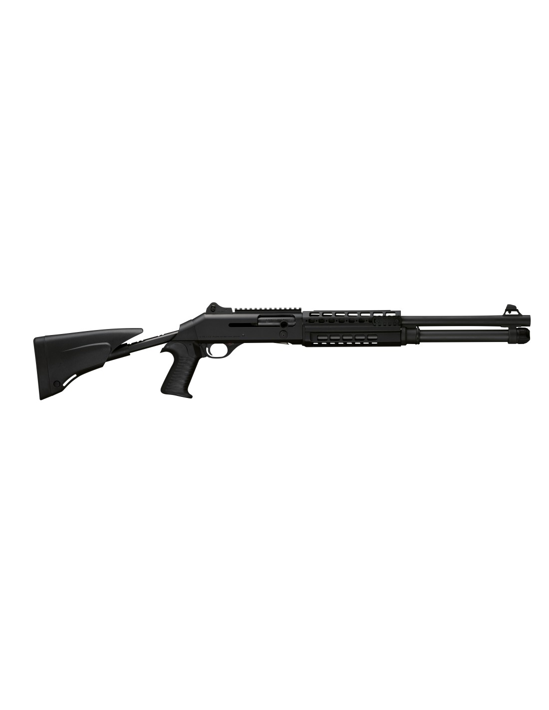 Escopeta de servicio del Ejército de los EE.UU. Fosfatada. Doble sistema de gas. Rail Picatinny. Disponible en cañón de 36 cm. M4 tiene como dotación estándar un cañón de 47 cm y un tubo cargador de 7 disparos. La particular culata telescópica permite, mediante el accionamiento del pulsador específico, variar la longitud del arma reduciéndola 13 cm. La versatilidad del arma se manifiesta también en las cantoneras intercambiables: culata fija y culata pistol grip, ambas de tecnopolímero reforzado con fibras de vidrio sustituibles sin necesidad de herramientas. La cantonera con la que terminan las culatas contribuye ulteriormente a reducir la ligera sensación de retroceso de la escopeta. Para aprovechar al máximo la precisión del arma, la M4 está dotada de una mira de hoja protegida por aletas laterales y por una dioptra regulable. Los objetivos pueden estar dotados de referencias luminiscentes para el tiro en condiciones de luz reducida.