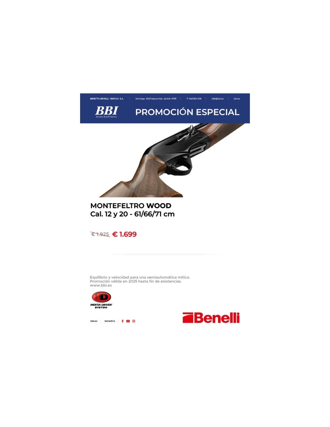 Solo cuando la forma y la función se encuentran, se puede ir más allá del estándar y reescribir los cánones del rendimiento de la caza. En la semiautomática Montefeltro, la funcionalidad de la escopeta nace directamente del diseño. La carcasa renovada garantiza un equilibrio y una puesta a tiro impecables, además se pueden activar inmediatamente los botones operativos. El guardamontes facilita las operaciones de carga porque está diseñado con un deslizamiento en la parte delantera y su diseño avanzado permite llegar al gatillo cómodamente y de forma espontánea. El disparo de Montefeltro, ligero y rápido, garantiza rendimientos constantes en el tiempo, control absoluto y seguridad. La culata y el guardamanos ergonómico han sido totalmente renovados para garantizar un agarre seguro y un control excelente del arma. Además, la maneta y el seguro, con formas actualizadas y sobredimensionadas, permiten un accionamiento accesible y natural, garantizando máxima fluidez y rapidez en las operaciones. Las acciones de carga y descarga están facilitadas por el Easy Loading y el arma está siempre lista para disparar gracias al cierre ampliado (Easy Locking). Los cañones equipados con estranguladores Crio garantizan rosas de dispersión compactas y uniformes para un rendimiento balístico excelente.