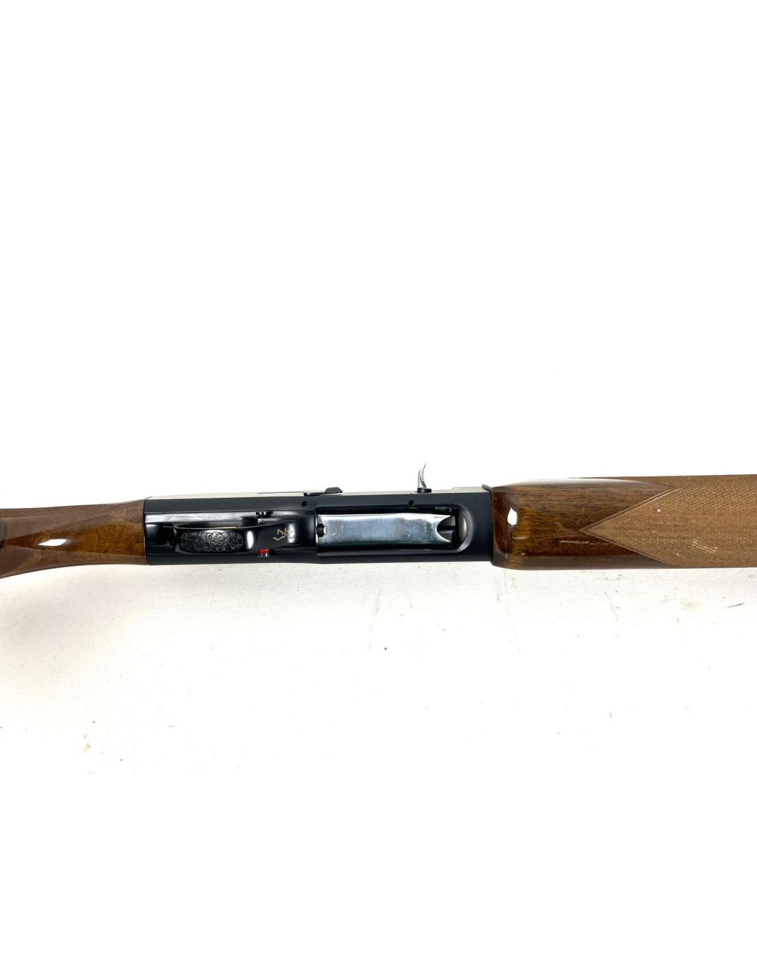 Se ofrece escopeta semiautomática Browning B-80 calibre 12 (Ref. 6986), un modelo clásico y muy valorado por su fiabilidad, suavidad de disparo y robustez mecánica. El arma se encuentra en excelente estado de conservación, con un elegante acabado en madera que aporta comodidad y equilibrio en el encare.