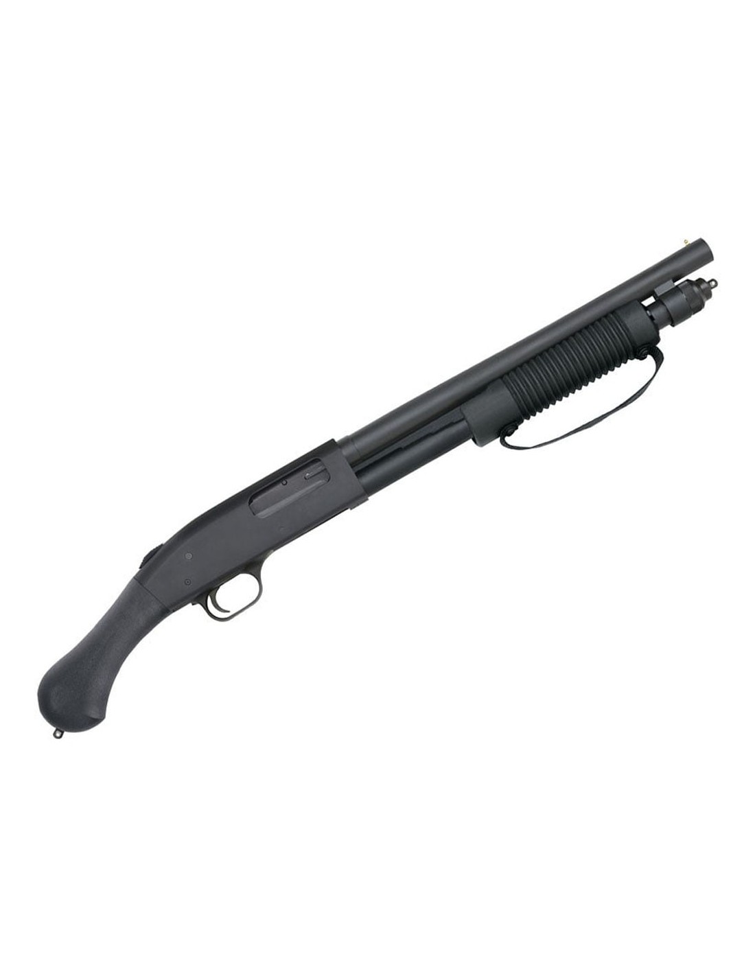 La Mossberg 590 Shockwave es una escopeta muy compacta de tan solo 67 cm. de longitud. Se caracteriza por tener una empuñadura de pistola “Raptor”, fabricada en polímero muy resistente con un acabado texturizado mejorado, y su forma de "cabeza de pájaro” que permite un control máximo del arma y minimiza el retroceso. El guardamanos táctico viene con correa para un mayor control y un funcionamiento más suave.