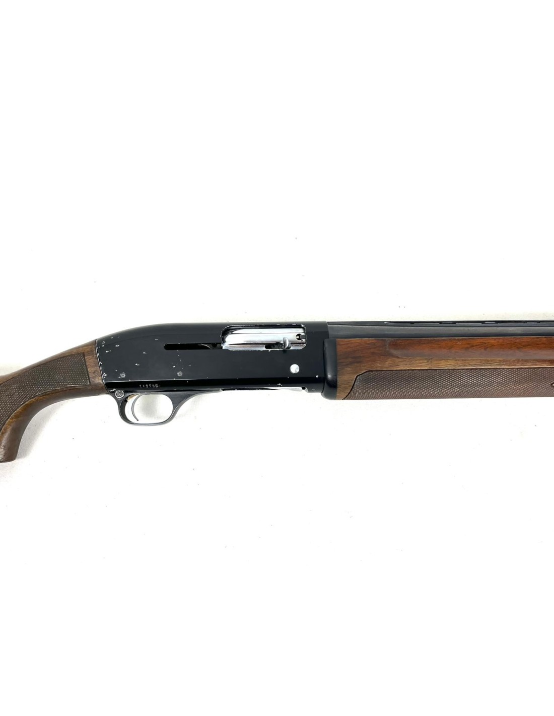La Franchi 500 C/12 es una escopeta semiautomática reconocida por su fiabilidad y excelente equilibrio entre ligereza y precisión. Este ejemplar se encuentra en buen estado de conservación, con ligeros signos de uso que no afectan su rendimiento ni la suavidad del disparo.