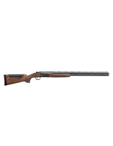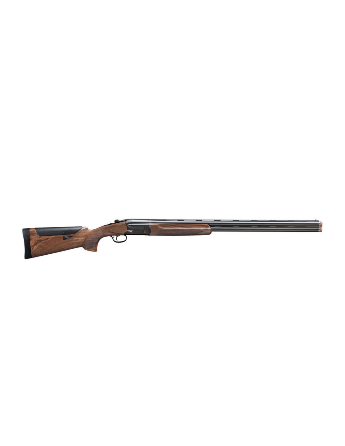 Escopeta TRAP. Báscula de color negro satinado , grabado minimalista, está adornada con grandes logos de dos tonos que afirman su carácter resueltamente deportivo y dinámico. La culata, perfectamente ergonómica, lomo regulable de nogal lacado negro satinado, presenta unas prestaciones de tiro realmente confortables , favoreciendo un contacto ideal con la mejilla del tirador. El cañón TRIBORE HP, con un perfil más ligero, posee una banda de mira con perspectiva 10-8 mm que permite un equilibrio perfecto del arma. El grupo disparador de tipo RACING permite arranques secos y rápidos; se puede ajustar la posición del gatillo. El arma cuenta con choques EXIS HP con perfil hiperbólico de 97 mm de longitud. Arma probada a 1.630 bar. Se suministra con estuche ABS