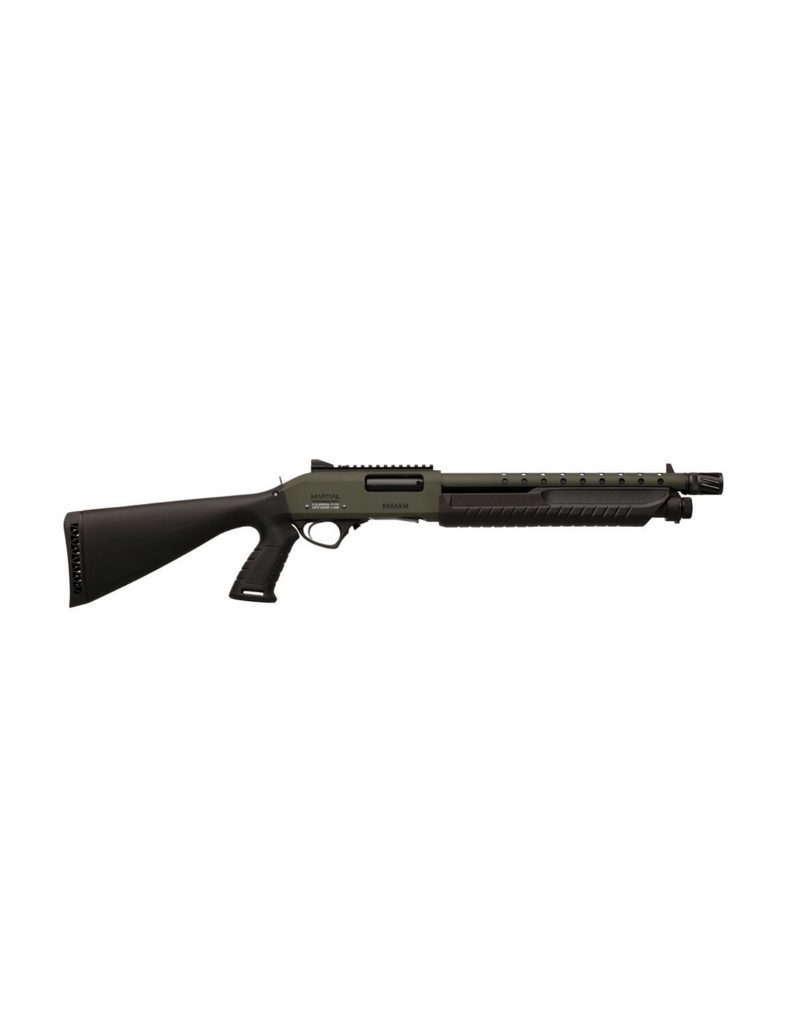 Martial de Fabarm con acabado CERAKOTE OLIVE DRAB GREEN, que garantiza además de un gran aspecto una protección extrema contra la corrosión y la abrasión. En este arma con una relación calidad precio excepcional nos hemos centrado en las características que marcan las diferencias entre los diversos operadores. Carril de serie MIL STD 1913, y miras simples perfectamente funcionales. Freno de boca . Disponible en varios largos de cañón. Capacidad para 6-7-8 cartuchos dependiendo del largo de cañón . Suministrado en caja de cartón.