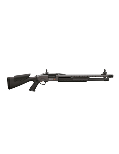 Calibre 12. Recámara magnum de 76 .Dispara todo tipo de munición (postas, bala, munición de goma no letal). Todos los cañones son TRIBORE y sus componentes están tratados contra la oxidación. Varias versiones .