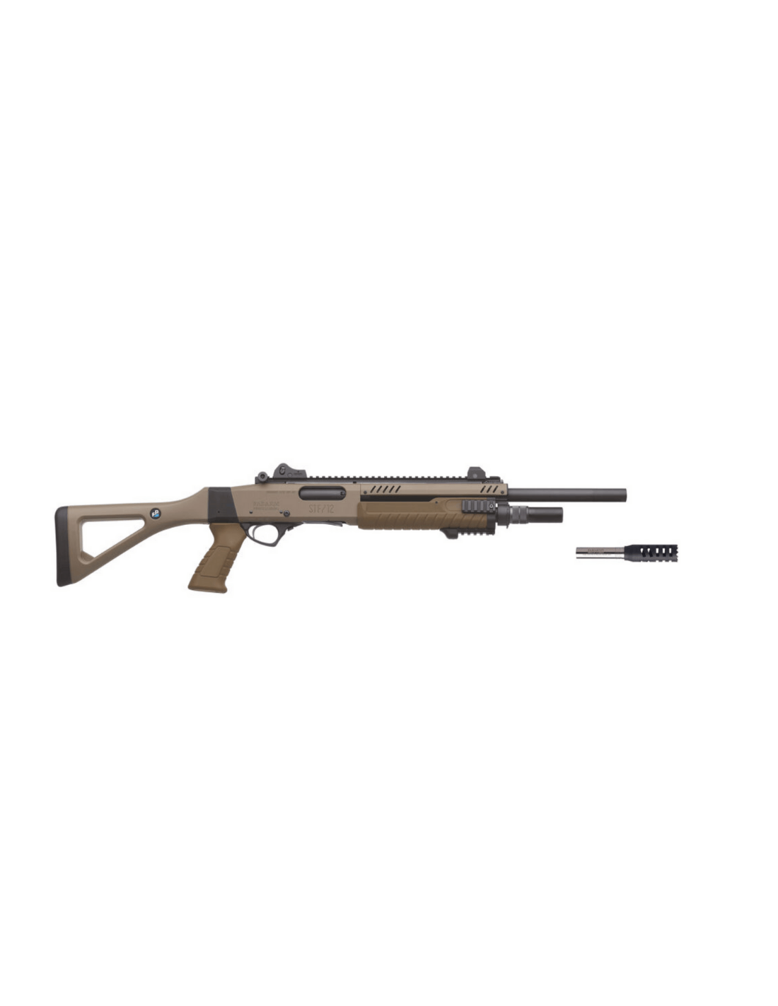 Versión Arena del modelo STF. Diversos accesorios y configuraciones. Cañones disponibles 36-46-51-56cm. Chokes INNER HP Accuracy. Culata plegable . Acabado Soft. Capacidad de carga de 6 a 8 disparos dependiendo de largo de cañón. La versión COMPACT incorpora de serie Bocacha rompe puertas y rail picatinny MIL-STD 1913. Peso aproximado de 3,090