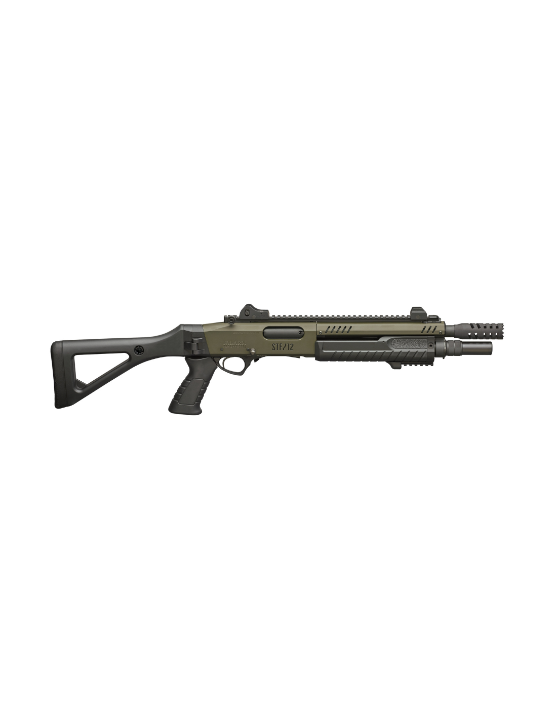 Versión MIL SPEC del modelo STF. Diversos accesorios y configuraciones. Cañones disponibles 36-46-51-56cm. Chokes INNER HP Accuracy. Culata plegable . Acabado Soft. Capacidad de carga de 6 a 8 disparos dependiendo de largo de cañón. La versión COMPACT incorpora de serie Bocacha rompe puertas y rail picatinny MIL-STD 1913. Peso aproximado de 3,090