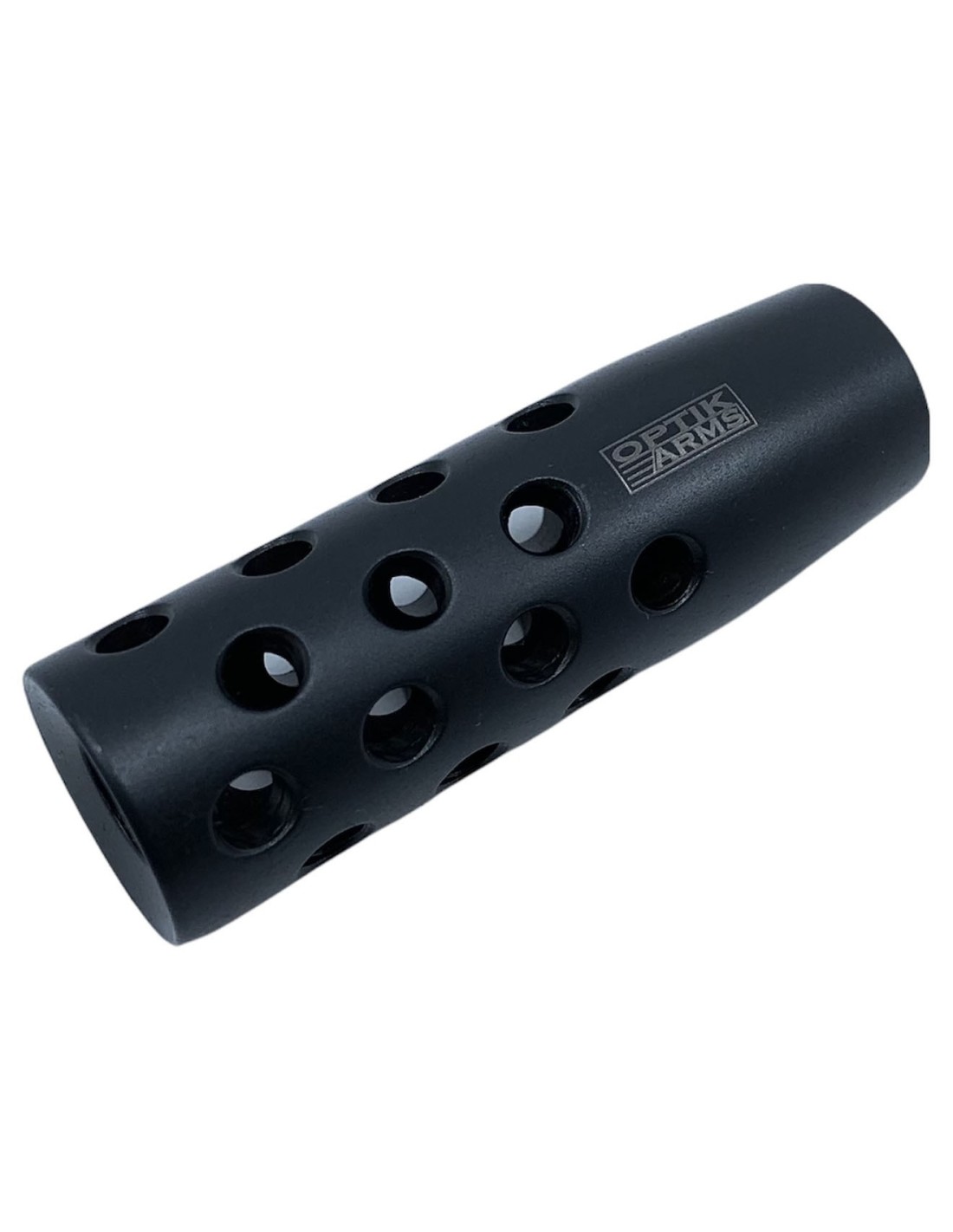Los frenos de boca Optik Arms están fabricados a partir de una pieza de acero cilíndrico de alta calidad y mecanizados en centros de CNC de alta precisión. Estos frenos de boca, fabricados a gran precisión para conseguir la mejor calidad, poseen un acabado pavonado mate negro.