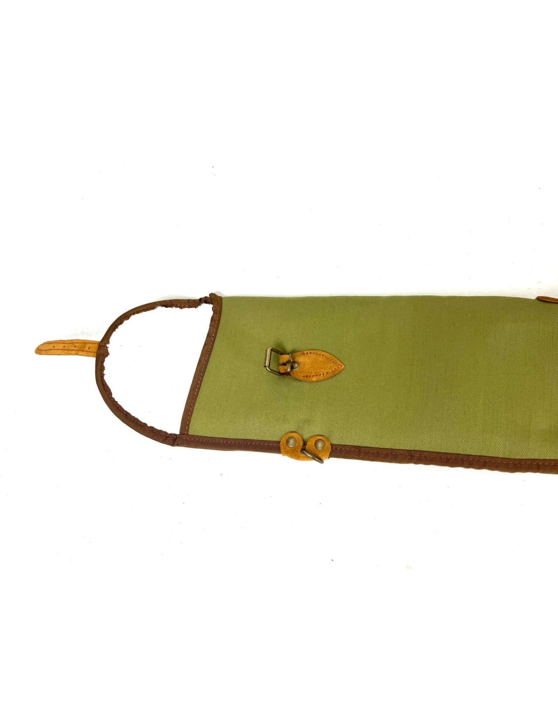 Funda para escopeta semiautomática en tela verde con detalles en marrón, con 130 cm de largo y relleno de borreguillo para máxima protección.