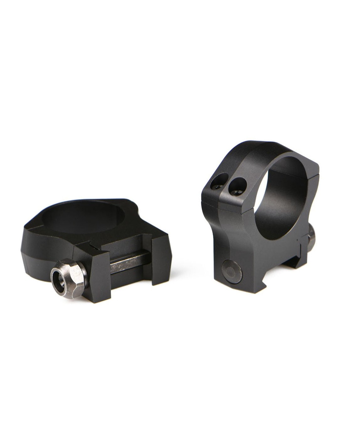 - Las anillas de unión horizontal se colocan en cualquier base Weaver/Picatinny sea de piezas separadas o en una sola pieza.