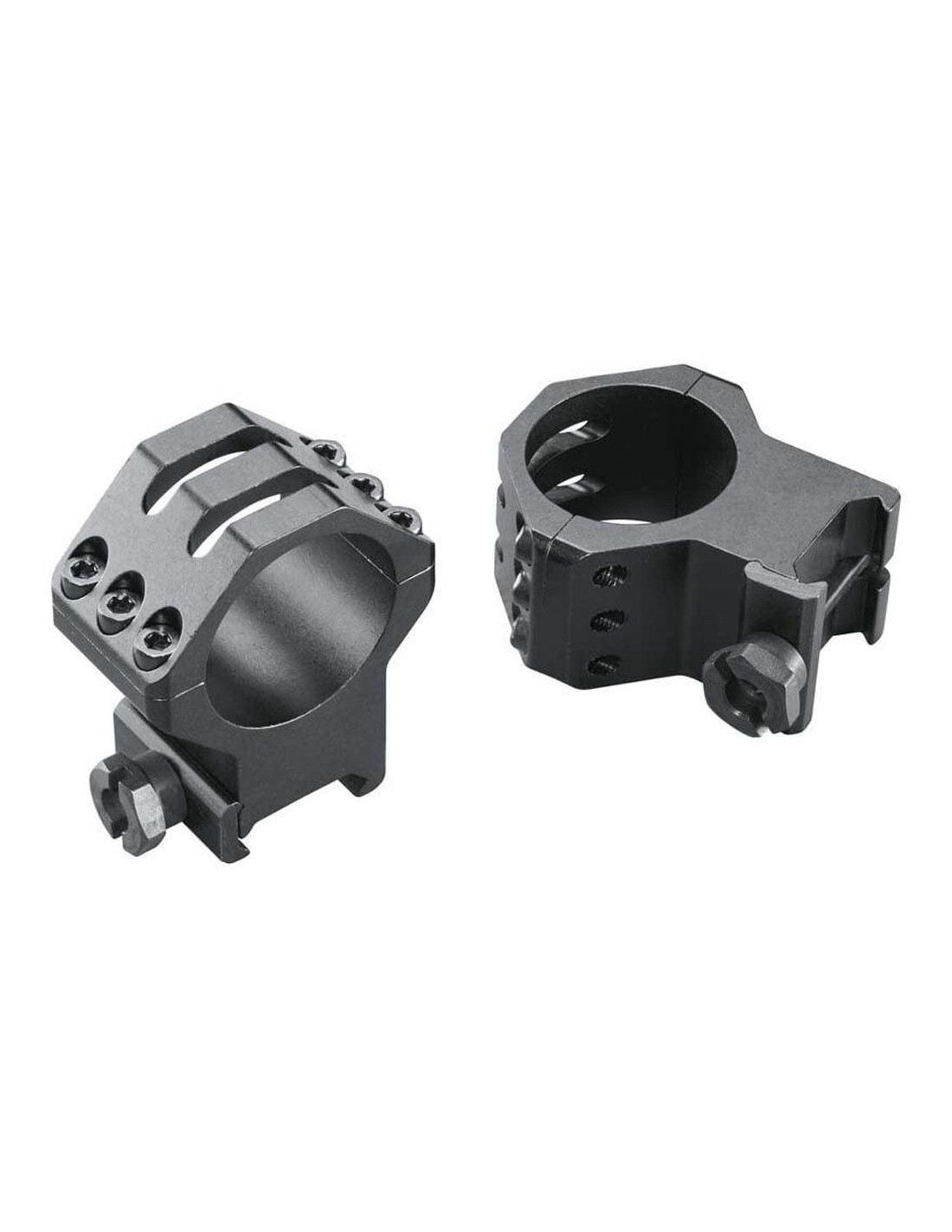 Las anillas Weaver tácticas de estilo picatinny están fabricadas en aluminio 6061-T6 de calidad aeronáutica, con acabado anodizado de capa dura para mayor durabilidad y resistencia a la corrosión. Cuentan con un diseño de esqueleto para reducir el peso sin pérdida de resistencia y seis puntos de contacto para mayor seguridad.