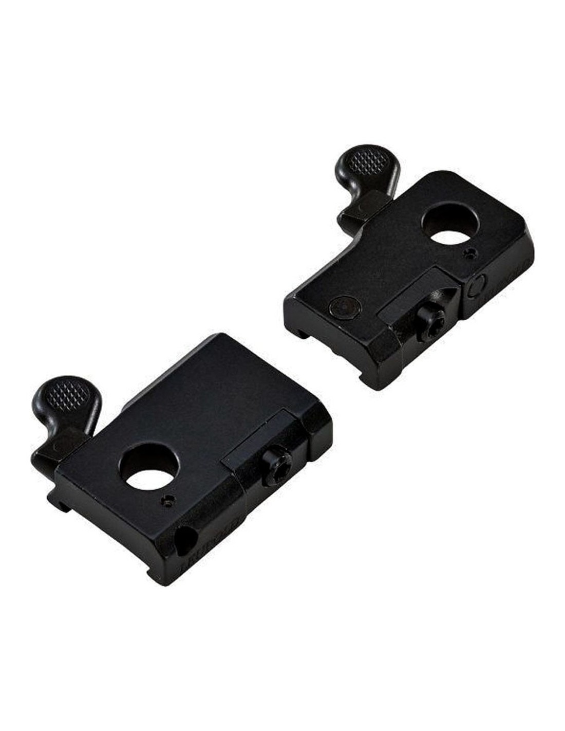 Las monturas QR se desmontan y montan rápidamente. Se gira la palanca hacia adelante y una excéntrica en el eje de la palanca engancha la base del anillo, tirando de ella hacia abajo y hacia adelante en la base, asegurándola sólidamente en su posición "cero".