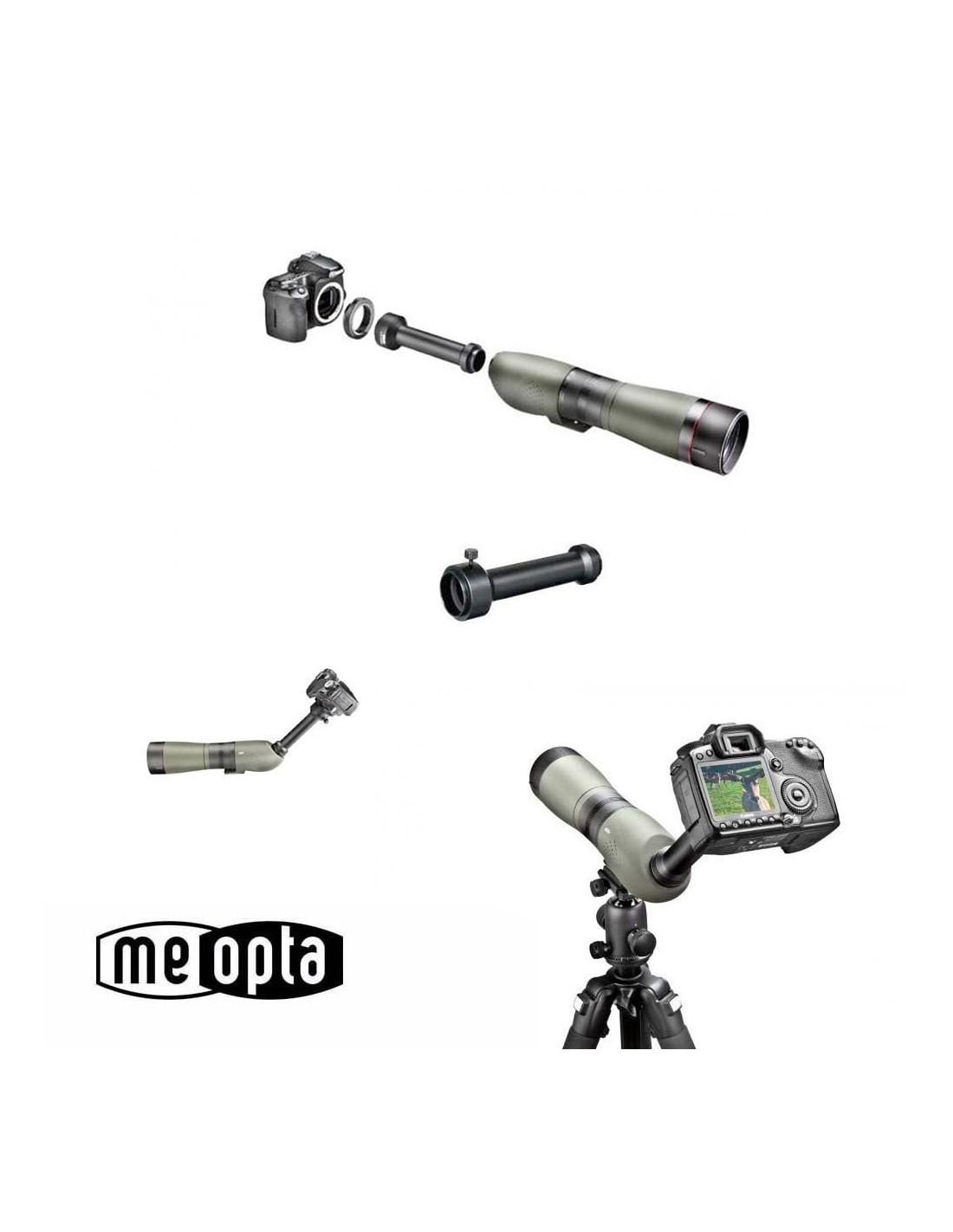 Primero, retire el ocular. A continuación, conecte el Adaptador de Cámara donde el ocular se uniría normalmente al alcance de proyección y atornille un adaptador de montaje en T al extremo opuesto del adaptador de cámara SLR. ¡Ahora puedes conectar tu cámara al Fotoadapter y ya puedes empezar a tomar fotos!