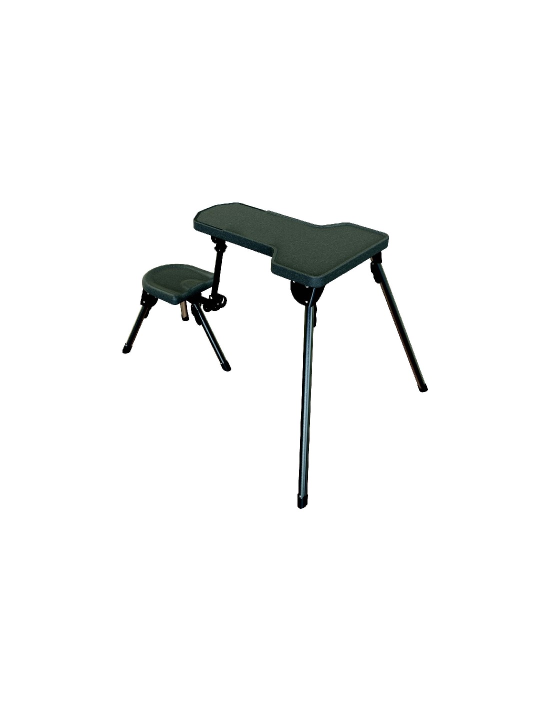 - Dimensiones Óptimas: La mesa mide 23" de ancho y 34" de largo, con una altura de patas de 32" y un asiento a 17", proporcionando una postura cómoda y estable para disparar.
