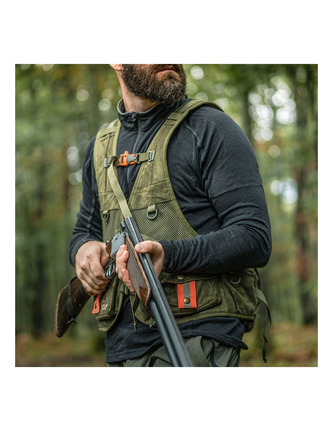 Suede Selva es el nuevo chaleco para los amantes de la caza, fabricado íntegramente en tejido SUEDE, se adapta fácilmente a cualquier talla de cuerpo gracias a las dos cintas de compresión laterales. Tiene correas de malla para los hombros con una correa de pecho deslizante con silbato y espalda acolchada transpirable. Equipado con una mochila trasera con una capacidad de 12 litros, cómoda y espaciosa con un amplio bolsillo delantero. Equipado con 4 bolsillos frontales: dos con solapa de cierre, cada uno equipado con 5 bandas elásticas y dos bolsillos laterales con cierre de cremallera. Las inserciones de alta visibilidad están incluidas y si es necesario salen de los bolsillos delanteros y del bolsillo superior de la mochila. Equipado con 2 bandas reflectantes extraíbles en los tirantes. Compatible con sistemas de hidratación. Talla única.