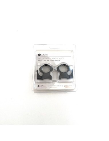Monturas Hawke de 1” altas, fabricadas en aluminio de alta resistencia, diseñadas para ofrecer máxima estabilidad y precisión en el montaje de visores sobre carriles de 9-11 mm.