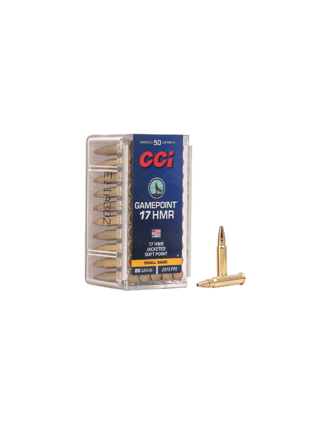 La punta de plomo con hoyuelo de la munición CCI Gamepoint en calibre 17 HMR permite que la bala se expanda como una bala de caza mayor para una máxima transferencia de energía. Su carga potente y precisa también minimiza los daños en la carne y la piel.
