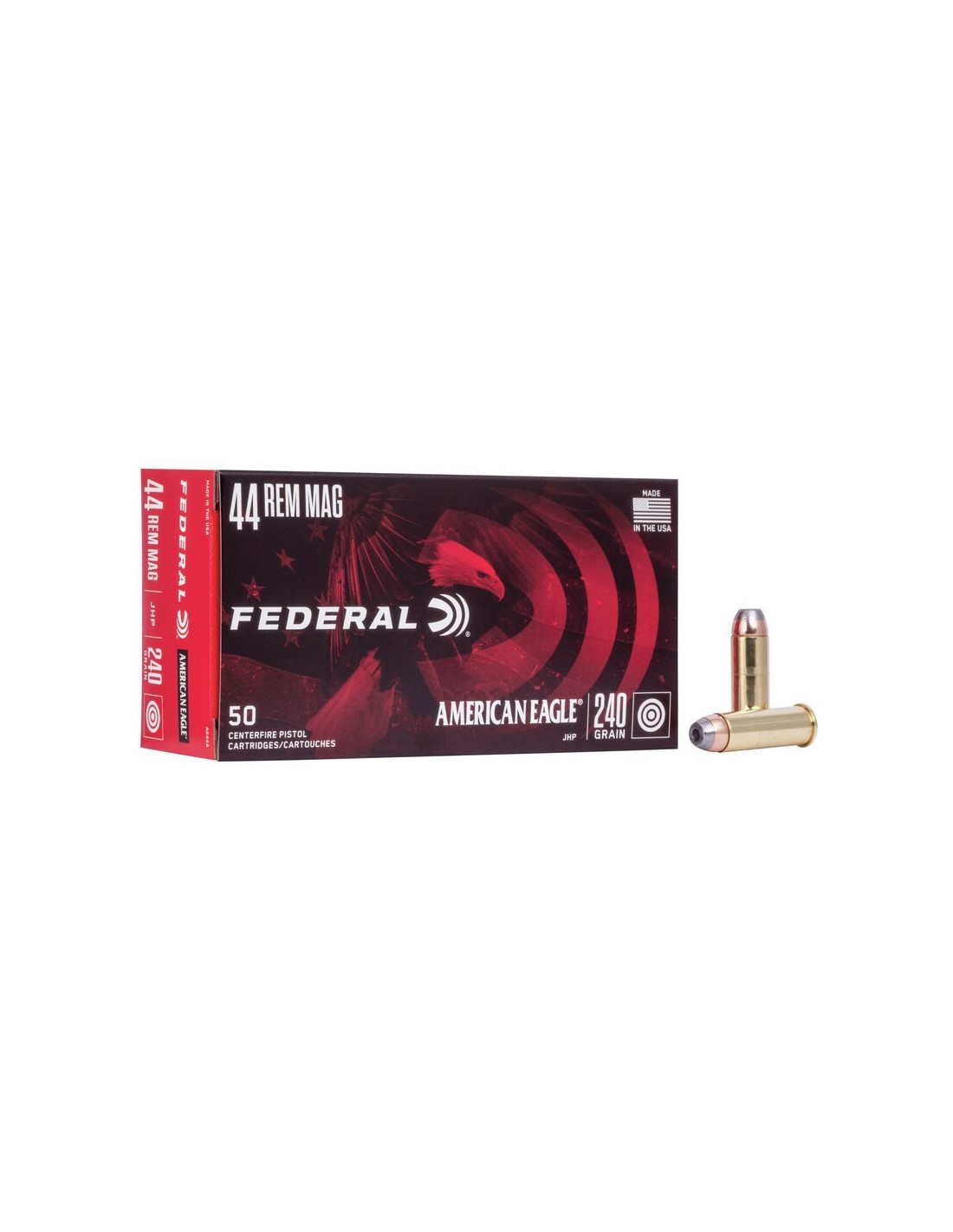 La munición para arma corta American Eagle de Federal ofrece un rendimiento uniforme y preciso a un precio perfecto para usuarios que realizan una gran cantidad de disparos. Las cargas cuentan con balas de calidad, vainas de latón recargables y pistones fiables. Esta munición de calibre 44 Rem. Mag. proporciona un rendimiento similar a las cargas de defensa personal y competición para una sensación familiar y una práctica realista.