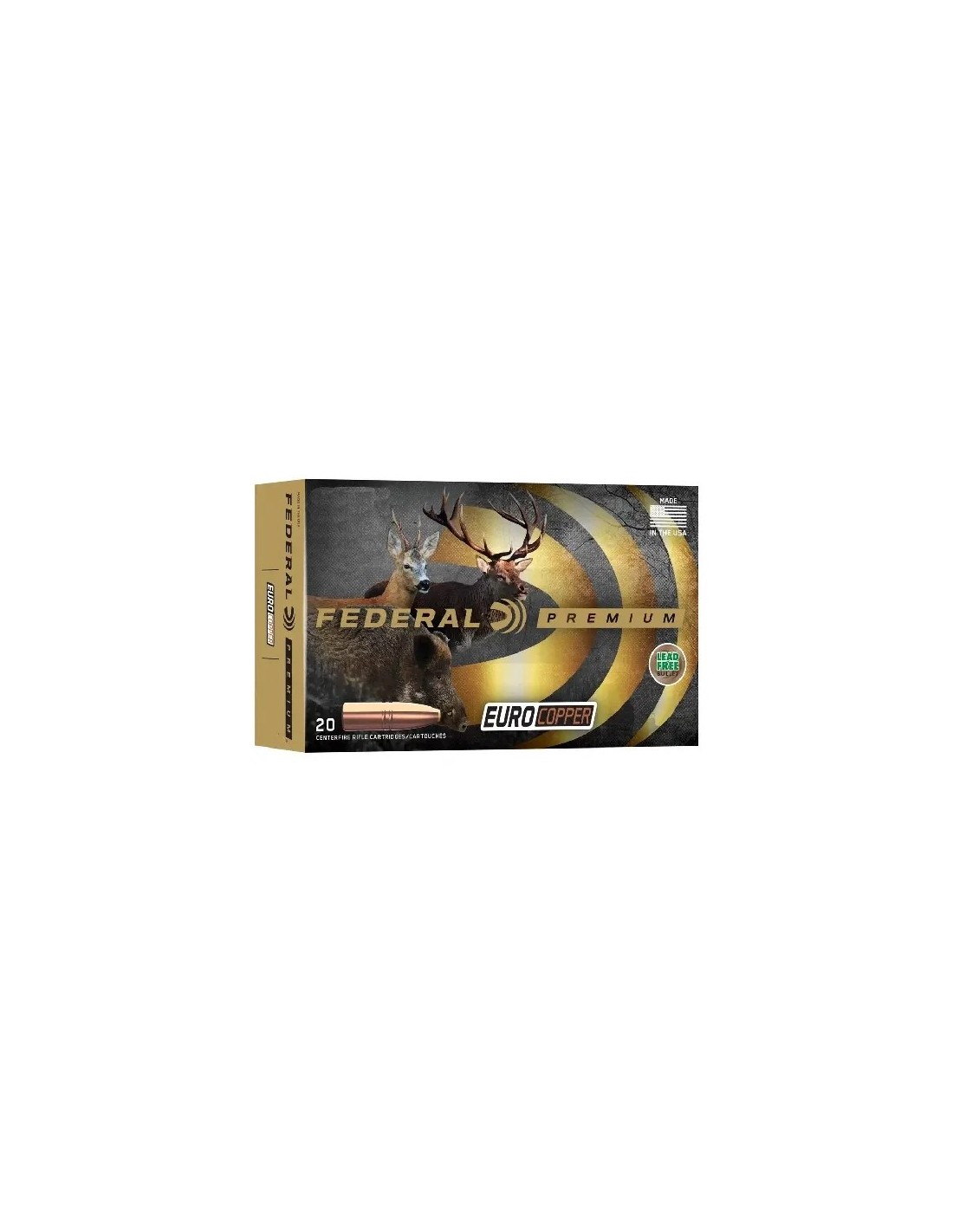 La Federal EuroCopper es una línea de munición sin plomo diseñada para satisfacer las necesidades de los cazadores europeos, ideal para distancias cortas y medias. Esta munición utiliza una bala deformable de aleación de cobre que mantiene una masa estable, lo que evita la fragmentación y es respetuosa con la carne de caza.