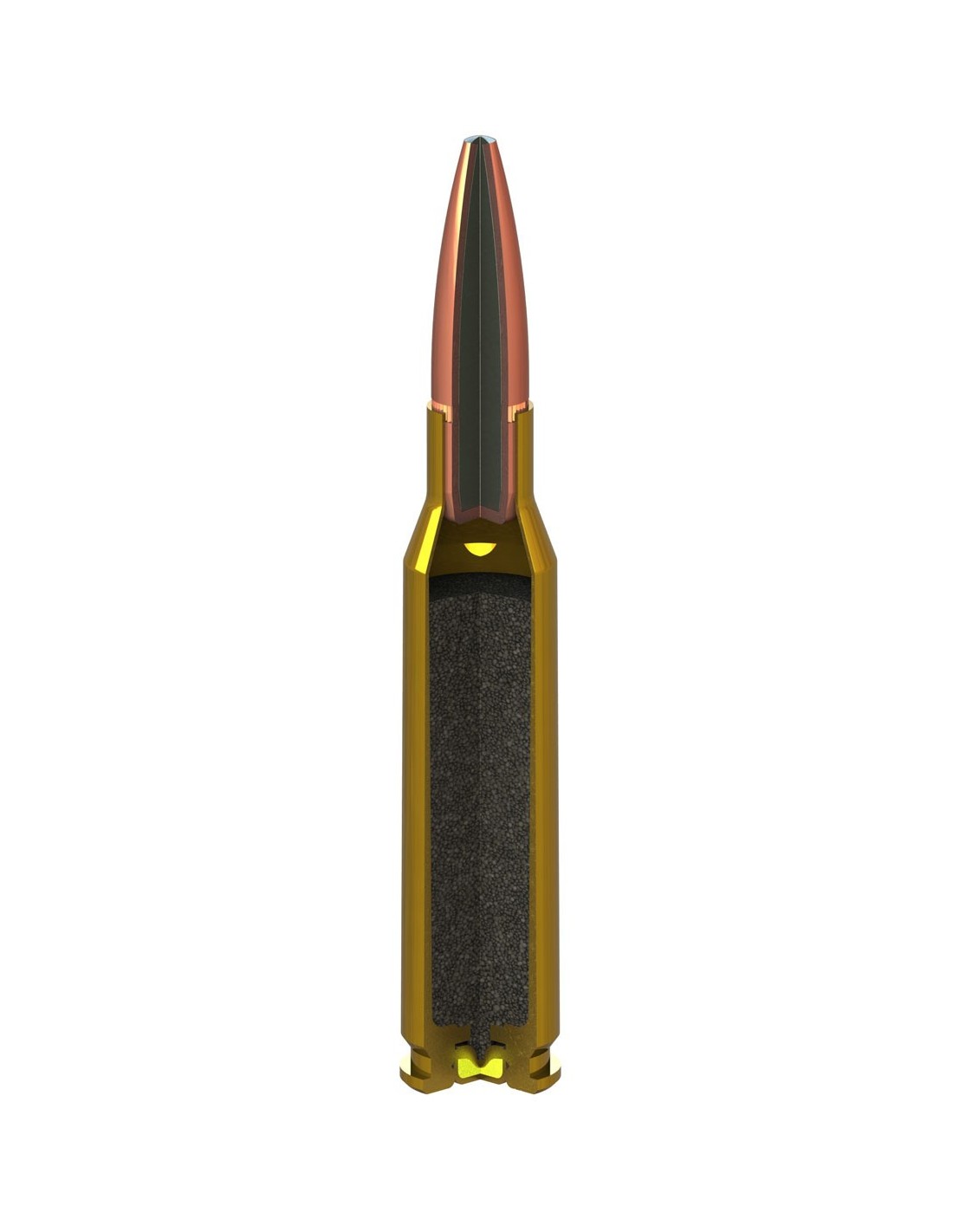 - La camisa de cobre se adhiere electroquímicamente al núcleo de la bala, lo que da como resultado una punta perfectamente uniforme.