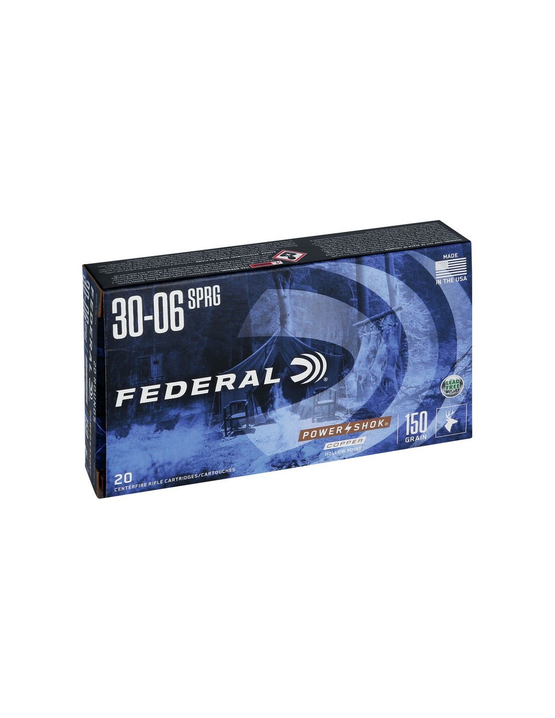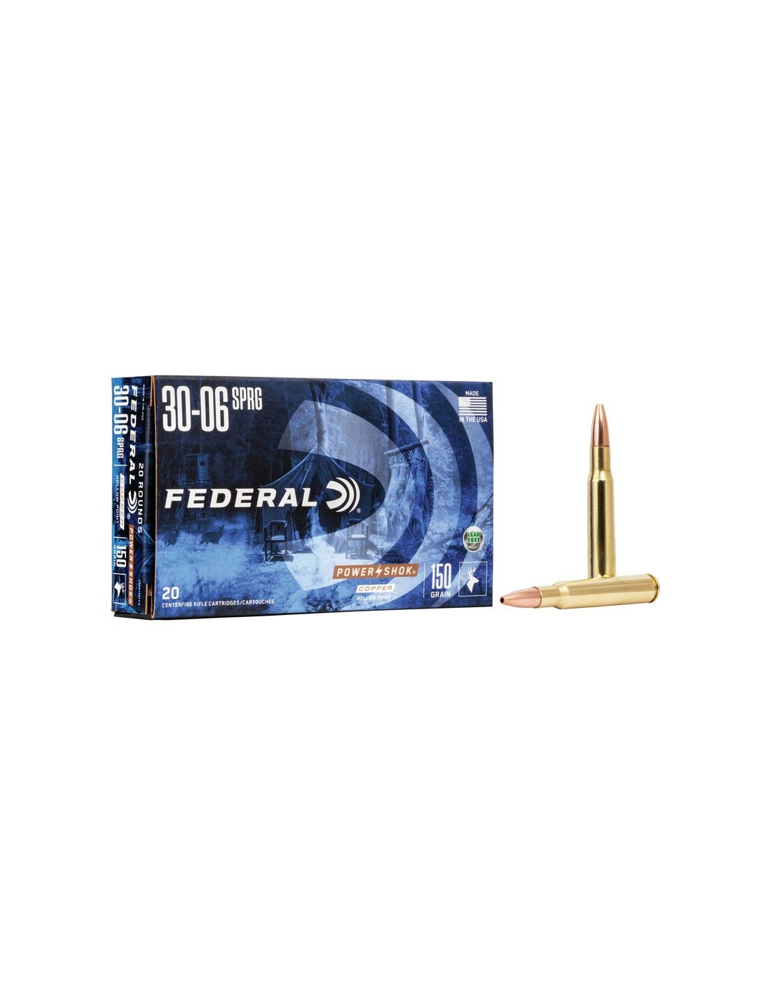 Los cazadores prácticos confían en las municiones de rifle Federal Power Shok para ofrecer un alto rendimiento a un precio atractivo. Power Shok Copper proporciona la misma consistencia y valor en una bala sin plomo. Las cargas cuentan con un proyectil preciso de aleación de cobre de punta hueca que crea grandes canales de herida.