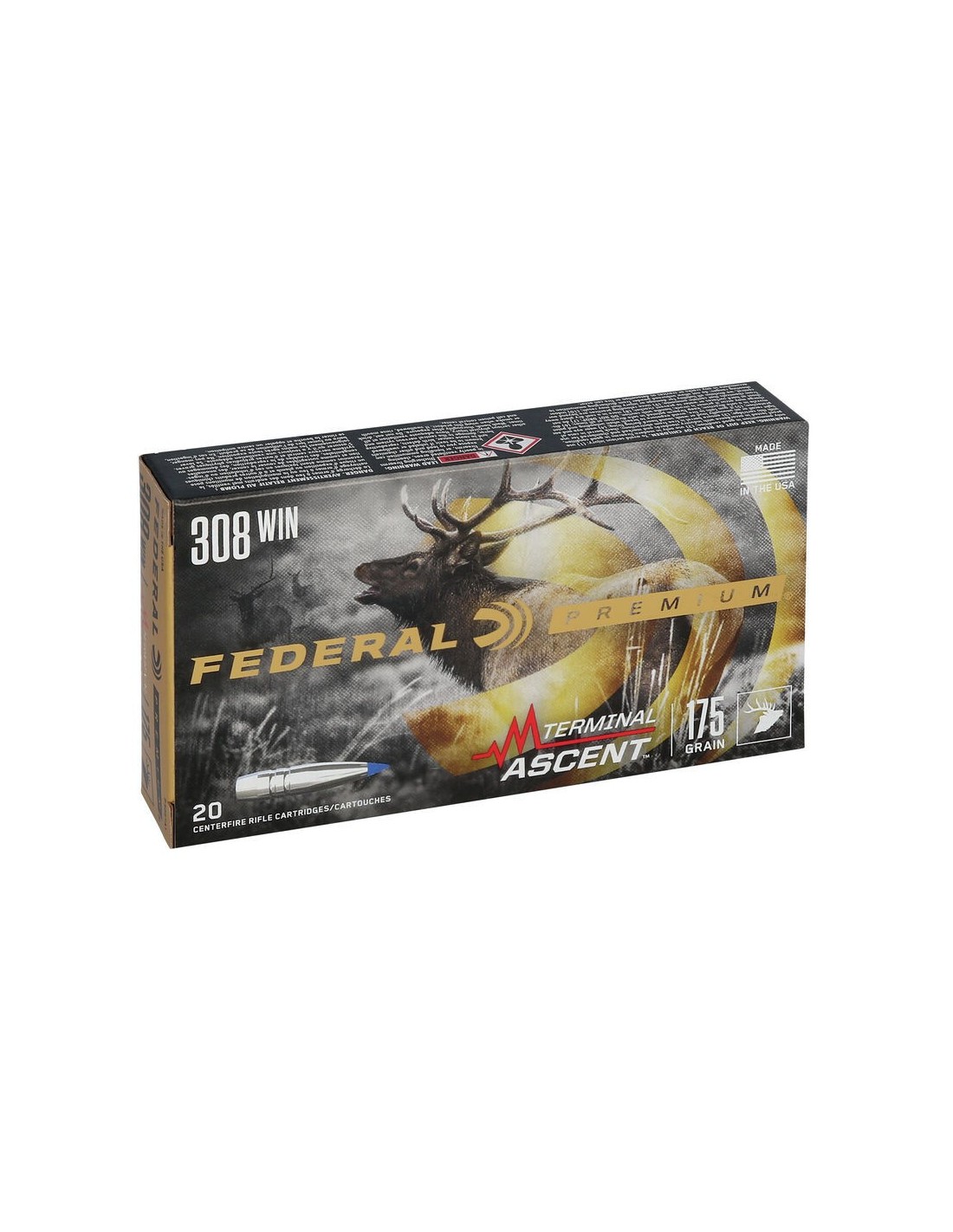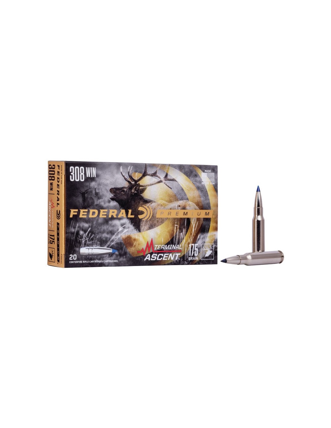 Cualquier cacería. Cualquier distancia. Vaya más allá de lo que jamás pensó posible con la munición Federal Premium Terminal Ascent. La construcción del proyectil adherido penetra profundamente en objetivos cercanos, mientras que la punta patentada de polímero Slipstream™ inicia la expansión a velocidades 60 m/s más bajas que los diseños comparables. El perfil largo y elegante de la bala ofrece un coeficiente balístico extremadamente alto, y su tecnología de ranuras AccuChannel™ mejora la precisión y minimiza el arrastre.