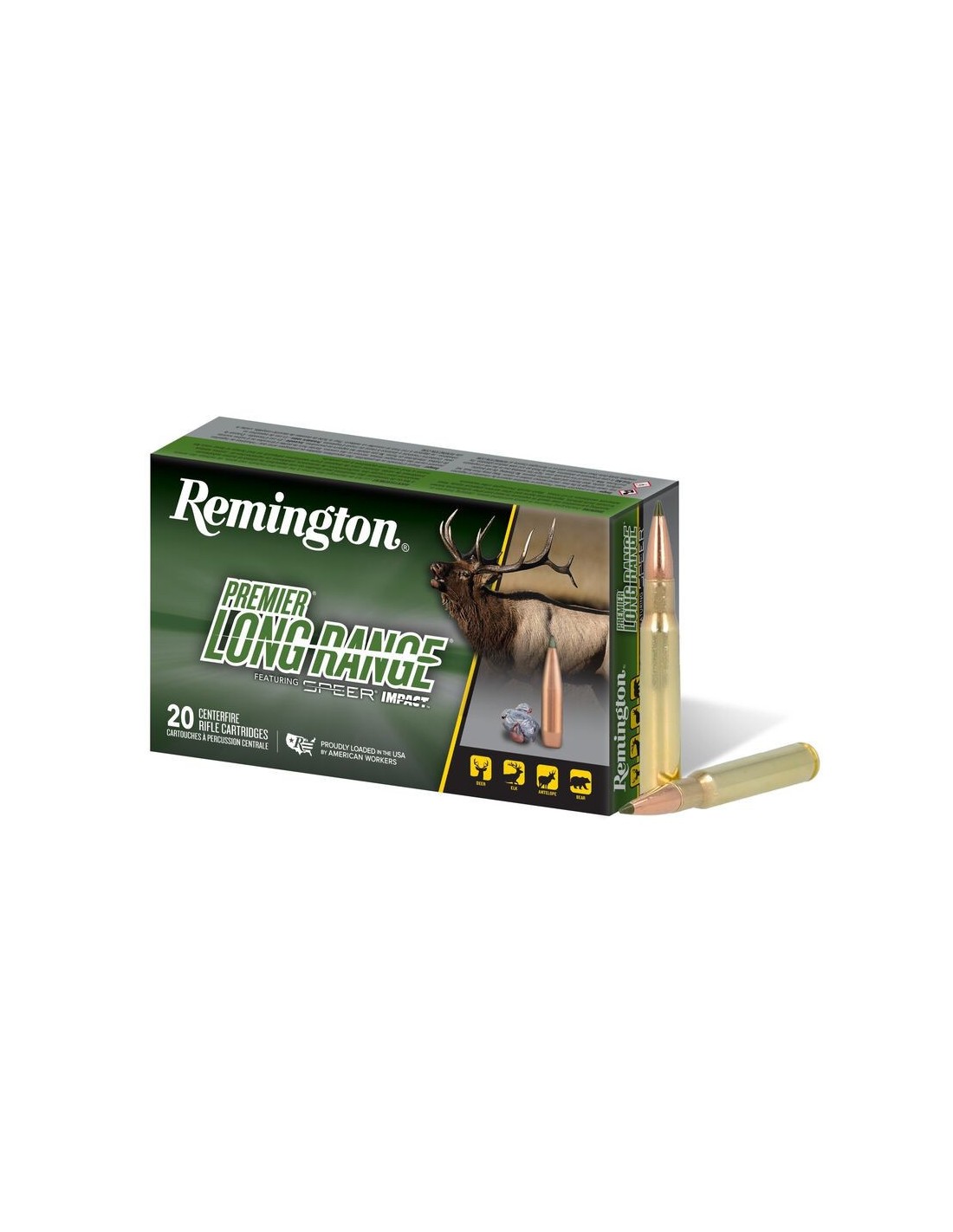 La revolucionaria bala Premier Long Range Speer Impact de Remington lleva la precisión quirúrgica y el rendimiento aplastante hasta los confines más remotos. La construcción de unión resistente y la punta de polímero Slipstream garantizan un alto coeficiente balístico, una precisión de grado ""match"" y un rendimiento terminal extremo. Esta es la munición de caza mayor más mortífera que fabrica Remington hasta el momento.