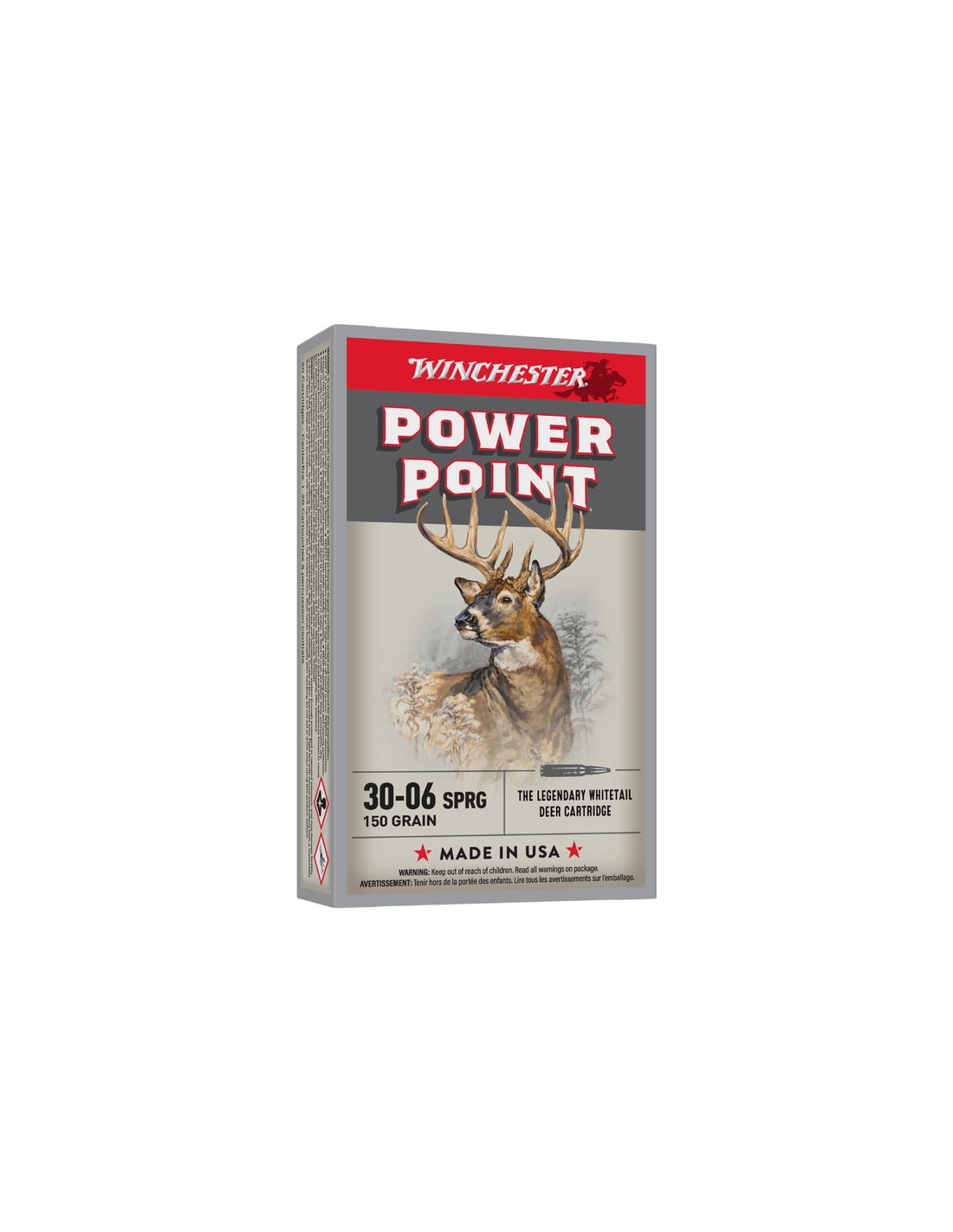 La Power-Point es la bala más popular de Winchester y la más usada por cazadores de rifle y tiradores desde hace más de 40 años. La sorprendente simpleza de esta bala de plomo de punta suave y encamisado especial con muescas, brinda un magnífico poder de parada en la cacería. A lo largo del Siglo XX, Winchester ha demostrado su dominio y pericia al desarrollar magníficos calibres como el .243, .270, .300 Magnum e igualmente el .338, los cuales, desde entonces se han convertido en best sellers.