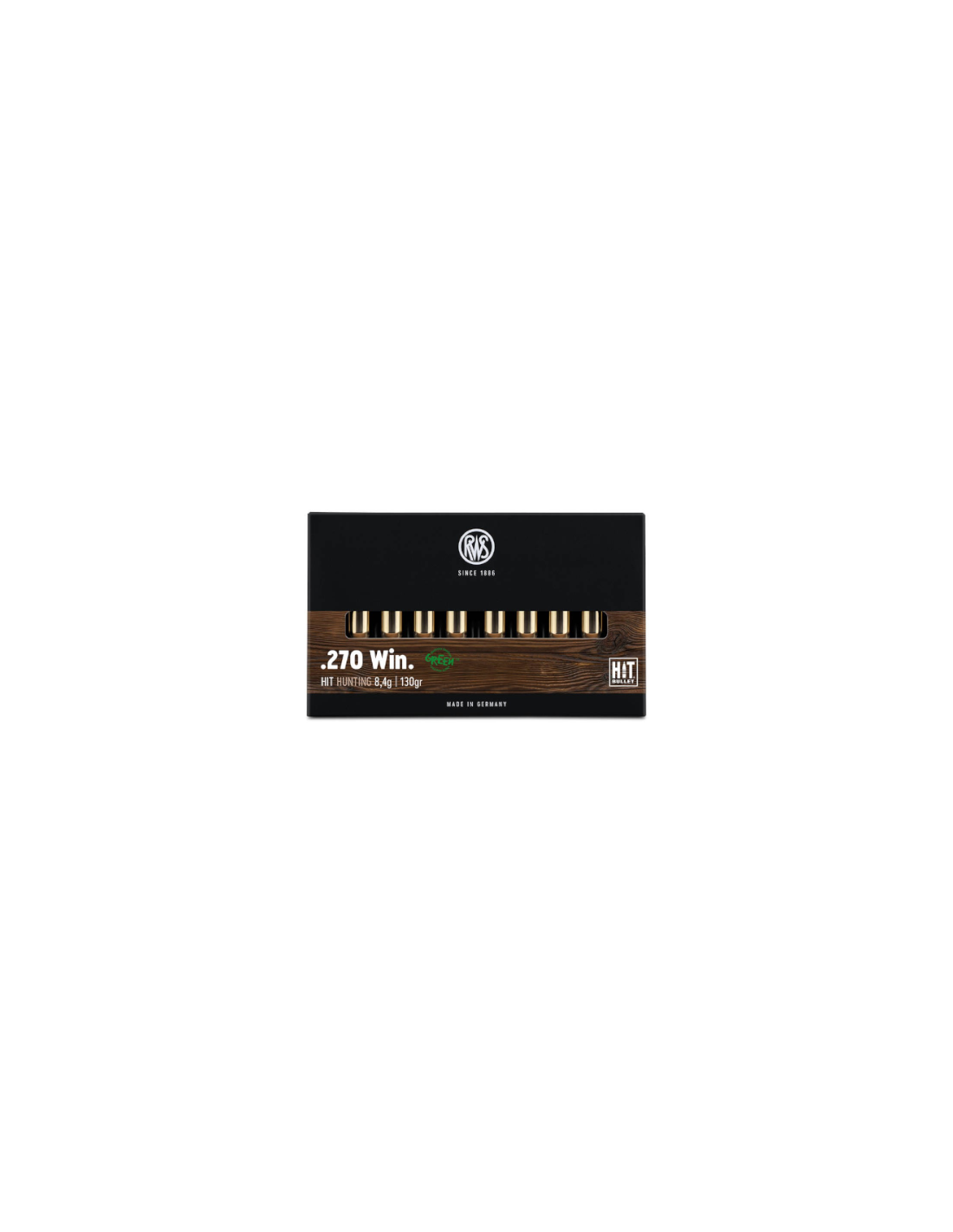 La RWS 270 Win HIT de 130 grains es una opción sin plomo y sin fragmentación, diseñada para cazadores que buscan una bala que mantenga su masa y se expanda en forma de seta. Ofrece una penetración excepcional, incluso contra huesos duros, y asegura una transferencia de energía limpia y controlada, preservando mejor la carne de la presa. Ideal para quienes priorizan un impacto preciso y un aprovechamiento óptimo.