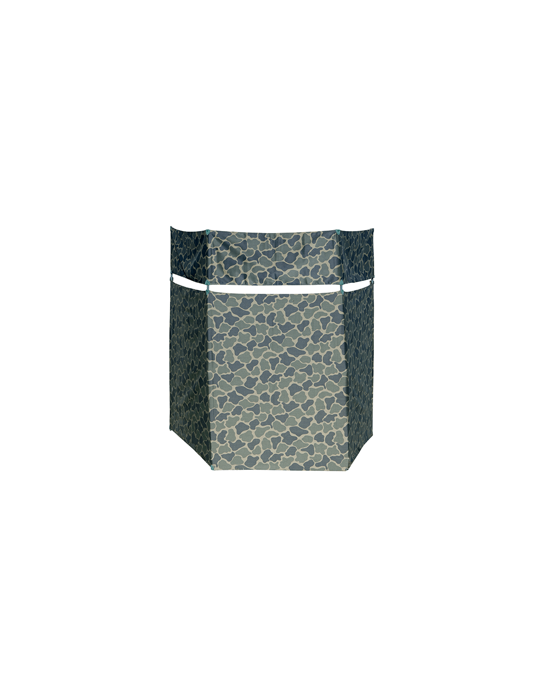 Pantalla portátil de tres caras para puesto fijo, con armazón de hierro de gran resistencia, tela de camuflaje y remates en piel de gran calidad. Incluye correa en piel vaqueta cuero viejo de gran calidad y resistencia .
