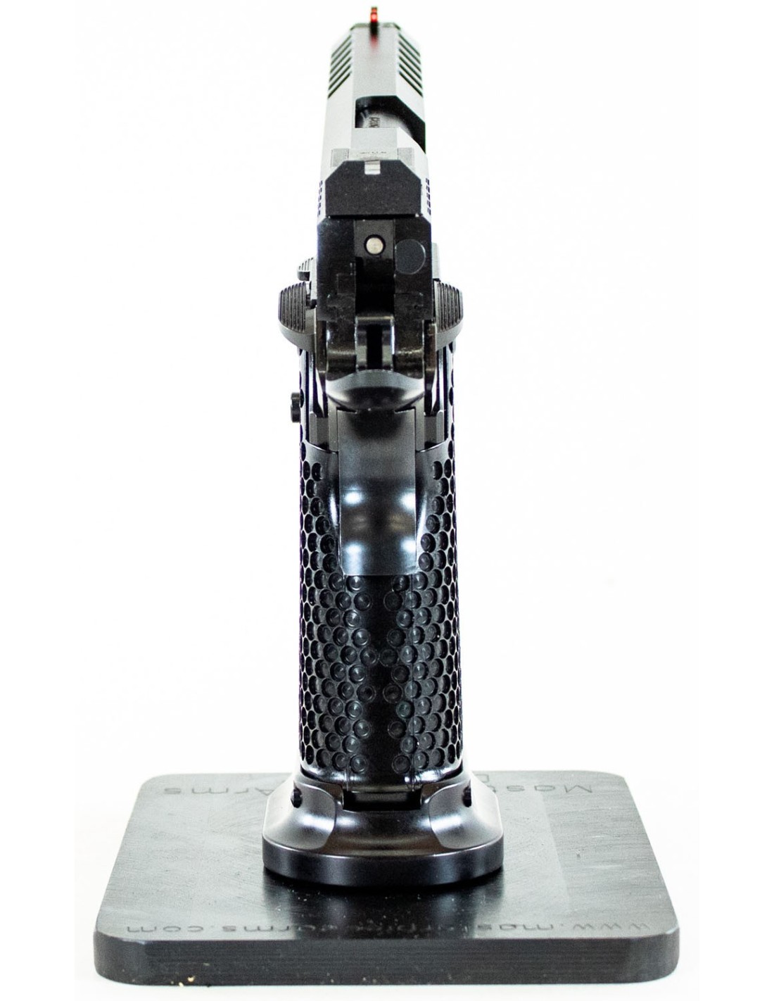 Configuración de la MPA DS40 TT Comp Limited: Marco y corredera de nitruro negro. Cañón de nitruro negro, Ambi-Safety, tope deslizante, empuñadura y gatillo de aluminio anodizado. Agarre (textura estándar o agresiva)